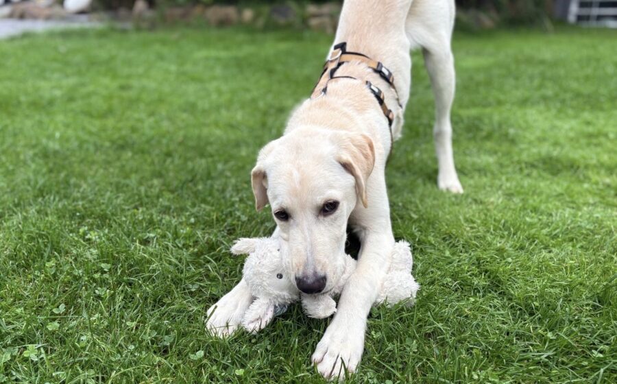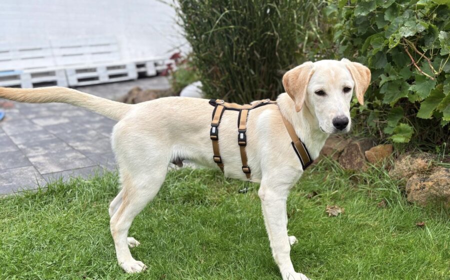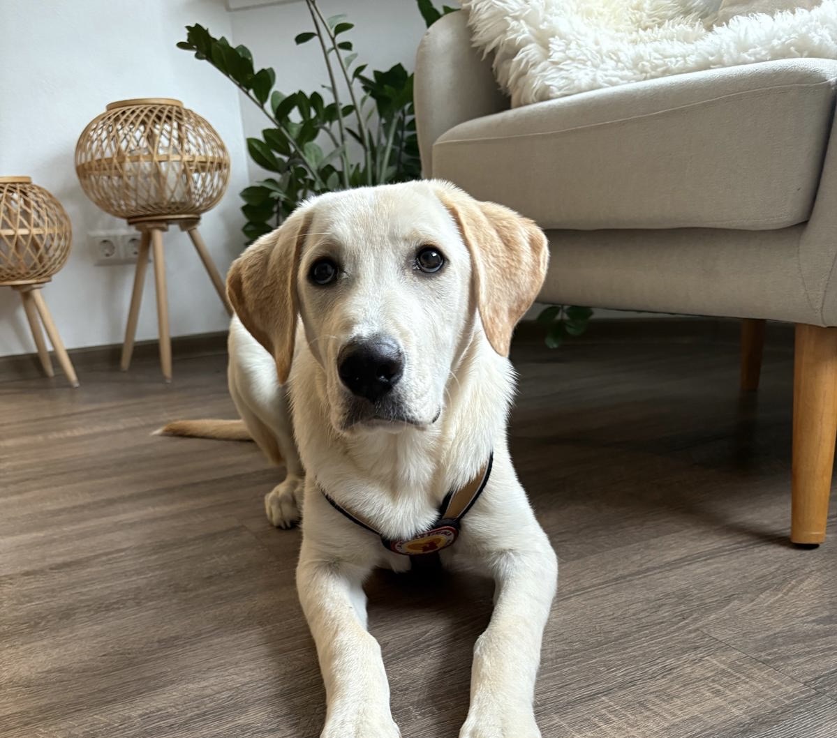 Jungrüde Cory ist ein herrlicher Hund mit der lieben und offenen Ausstrahlung eines Labradors. Wir wissen nicht, welche Hunderassen noch in ihm stecken, aber die Labrador-Gene sind schon rein äußerlich unverkennbar. Mit seinem cremefarbenen Fell und den dunkleren Akzenten sieht er wirklich goldig aus. Cory ist derzeit ca 5 Monate alt und ca 50 cm groß. Wir vermuten, dass er eine typische Labbigrösse bekommen wird. Der süße Bub wirkt nicht überdreht und entdeckt neugierig und offen seine neue Welt. Er reagiert gut auf Leckerlis, was das Trainieren natürlich um vieles leichter macht und so klappen auch die ersten Grundkommandos schon recht gut.