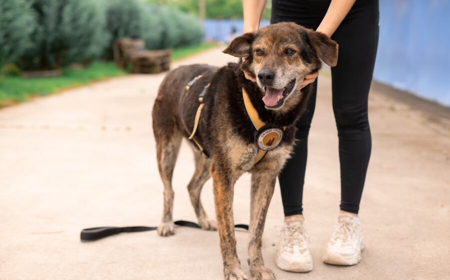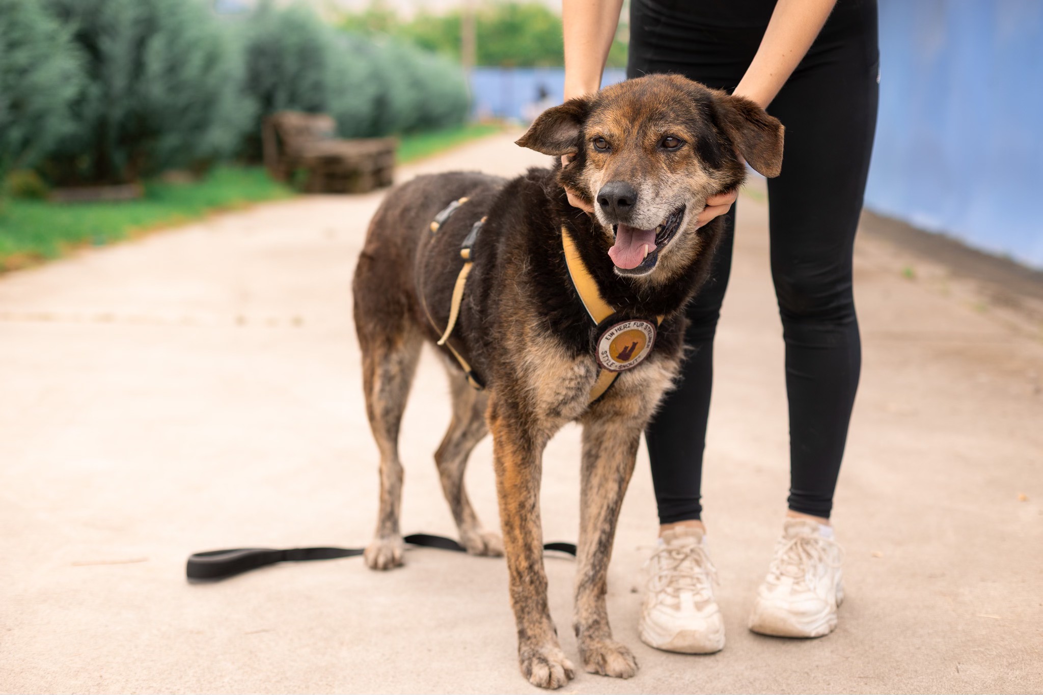 Mit ca. 60 cm Schulterhöhe und 30 bis 35 kg Körpergewicht gehört Cujo zu den großen und imposanten Hunden. Er hat ein wunderschön gezeichnetes schwarz-braunes Fell und mit seinen schwarzen Augen und seinem treuen Blick schaut er jedem tierlieben Menschen direkt ins Herz. Cujo ist schätzungsweise 6 Jahre alt und trotz seiner schweren Vergangenheit hat er den Glauben an die Menschen nicht verloren. Er verhält sich sehr freundlich und anhänglich, genießt jede Streicheleinheit und lässt sich bereits das Geschirr anziehen. Cujo behält seine Menschen im Blick und orientiert sich an ihnen. Auch andere Hündinnen mag er sehr. Bei Rüden muss man allerdings erstmal vorsichtig sein. Da entscheidet er nach Sympathie.