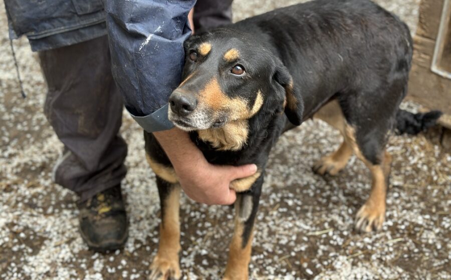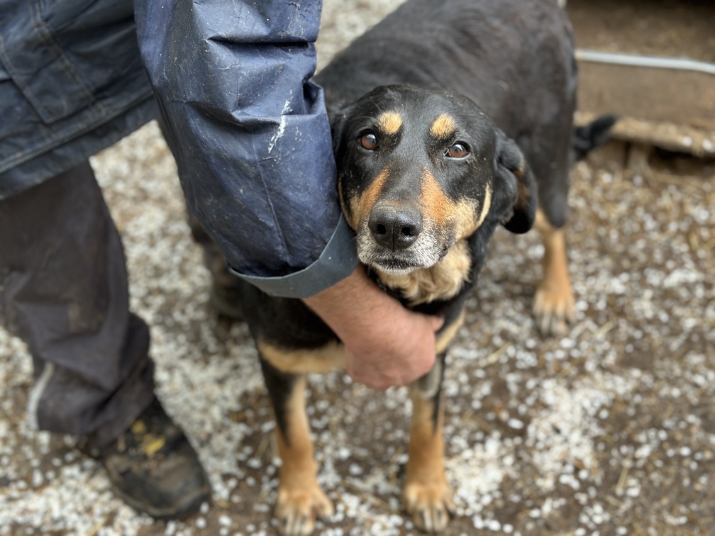 Dakota ist etwa 6 Jahre alt und ca. 50 cm groß. Sie hat schönes schwarzes Fell mit braunen Akzenten und niedliche Schlappohren, die ihr einen warmen, weichen Ausdruck verleihen. Rein optisch können wir nicht ausschließen, dass in ihr Jagdhund-Gene stecken.