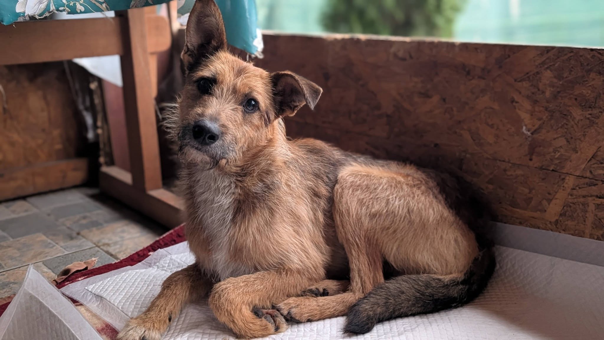 Mit einer Schulterhöhe von ca. 50 cm und einem Gewicht von rund 17 kg ist Danny ein sportlicher, mittelgroßer Rüde. Er hat wunderschönes, strubbeliges, hellbraunes Fel mit einer weißen Brust, eine schlanke, sportliche Figur und zwei unterschiedliche und besonders lustige Öhrchen. Mit seinem freundlichen Blick aus schwarzen Augen ist er ein sehr ansprechender und hübscher Rüde. Danny ist etwa 1,5 Jahre alt und hat noch sein ganzes Leben vor sich.