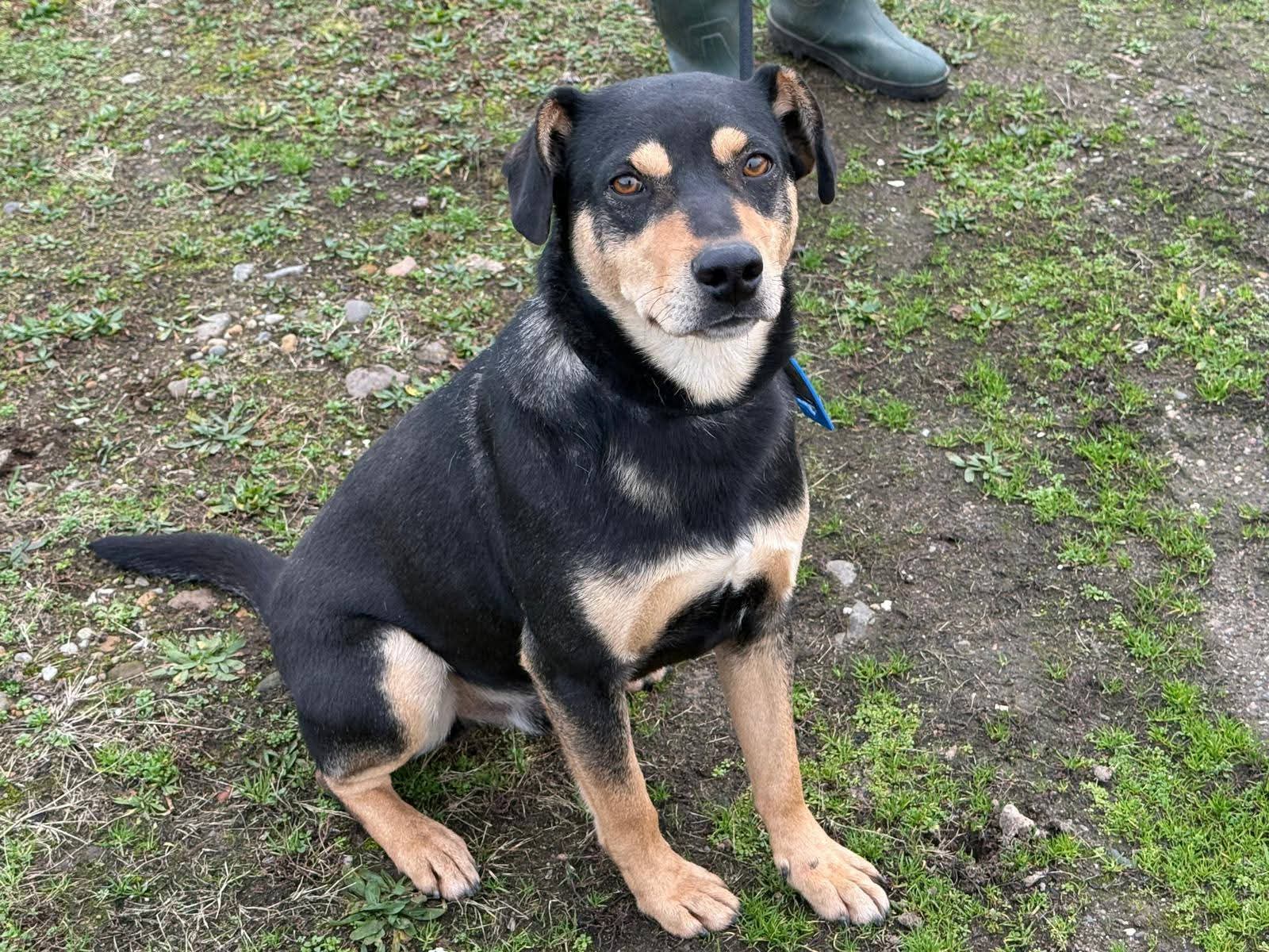 Danny ist ein ca. 2 Jahre alter Rüde, etwa 50 cm groß und eine wahre Schönheit mit seinem kurzen schwarzen Fell, den hübschen braunen Zeichnungen und den strahlenden bernsteinfarbenen Augen. Seine Vergangenheit bleibt leider ein Rätsel: Er wurde einfach an einem Rastplatz angebunden und ausgesetzt. Die vielen Narben auf Kopf und Beinen geben einen stillen Hinweis darauf, dass Danny in seinem jungen Leben vermutlich schon einiges durchmachen musste.
