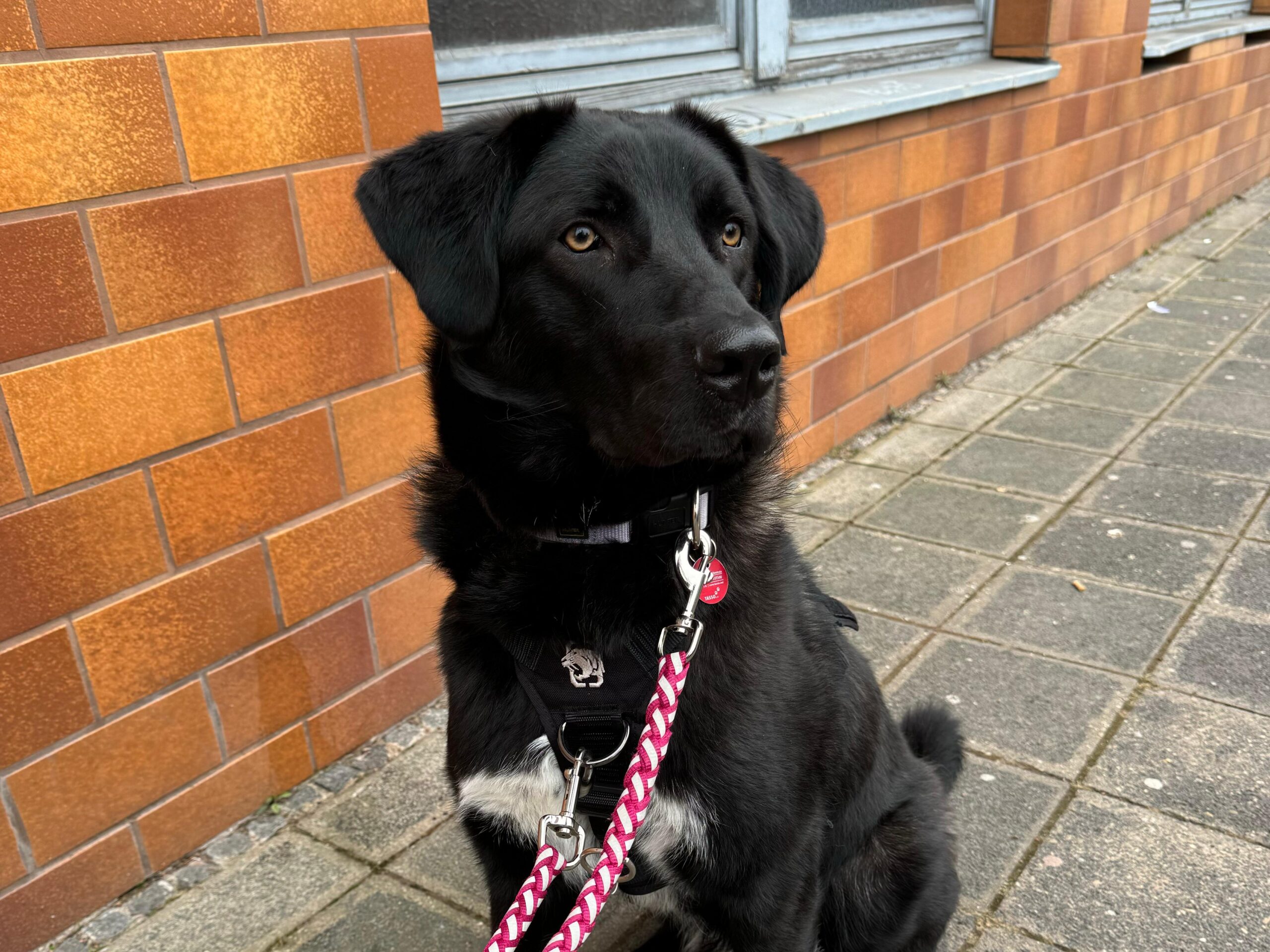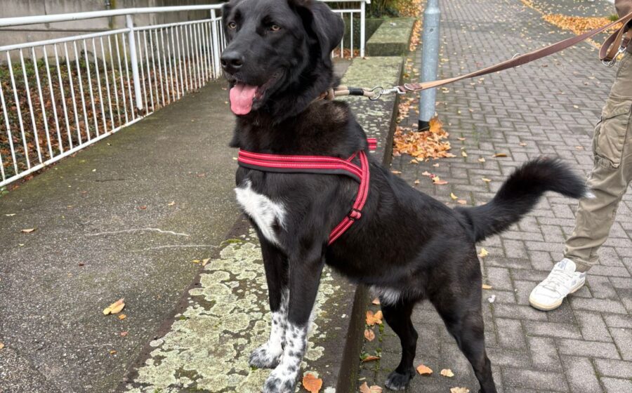 Seine Geschichte beginnt in Rumänien, wo er mit einer eingewachsenen Kette um den Hals gefunden wurde – verletzt, unterernährt und sich selbst überlassen. Nach einer aufwendigen Operation durfte Dante im November 2024 nach Deutschland reisen und zeigt seither eindrucksvoll, wie groß seine Lebensfreude und Lernbereitschaft sind.