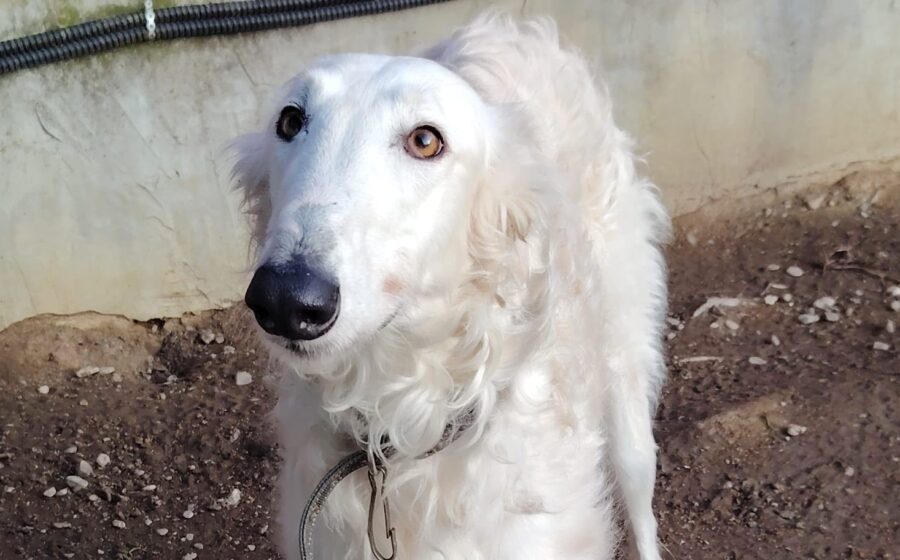 Es gibt Hunde, deren bloße Erscheinung einen sofort innehalten lässt. Dembe ist ein solcher Hund. Mit seinen stolzen 75 cm Körpermaß und seiner eleganten Silhouette ist er vermutlich ein Barsoi – ein Hund von aristokratischer Anmut, dessen sensible Seele so gar nicht zu der Härte passt, die er zuletzt erfahren musste. Sein Name, der in der Sprache Luganda „Frieden“ bedeutet, könnte sein Wesen nicht treffender beschreiben. Doch bevor Dembe diesen Frieden finden durfte, war seine Geschichte von Traurigkeit geprägt: Ursprünglich bei einem Züchter gekauft, wurde er von seiner Familie aufgrund einer Notlage zurückgelassen, als diese nach Spanien auswanderte. Er blieb bei einer Verwandten zurück, die für das feine Wesen eines solchen Hundes keinerlei Verständnis aufbrachte und ihn im Garten an die Kette legte. Ein unvorstellbares Schicksal für einen so menschenbezogenen und feinfühligen Windhund, der für die Freiheit und die Nähe zu seinen Menschen geboren wurde.