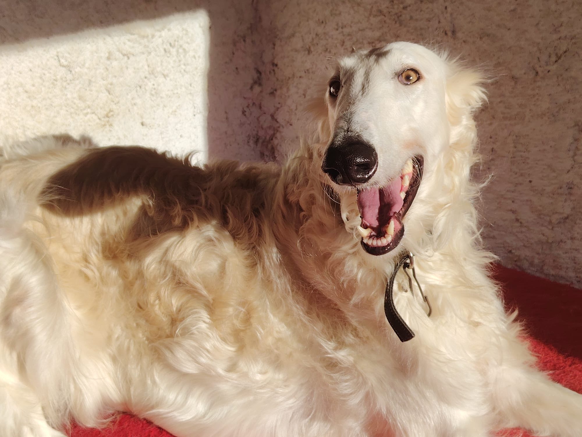 Es gibt Hunde, deren bloße Erscheinung einen sofort innehalten lässt. Dembe ist ein solcher Hund. Mit seinen stolzen 75 cm Körpermaß und seiner eleganten Silhouette ist er vermutlich ein Barsoi – ein Hund von aristokratischer Anmut, dessen sensible Seele so gar nicht zu der Härte passt, die er zuletzt erfahren musste. Sein Name, der in der Sprache Luganda „Frieden“ bedeutet, könnte sein Wesen nicht treffender beschreiben. Doch bevor Dembe diesen Frieden finden durfte, war seine Geschichte von Traurigkeit geprägt: Ursprünglich bei einem Züchter gekauft, wurde er von seiner Familie aufgrund einer Notlage zurückgelassen, als diese nach Spanien auswanderte. Er blieb bei einer Verwandten zurück, die für das feine Wesen eines solchen Hundes keinerlei Verständnis aufbrachte und ihn im Garten an die Kette legte. Ein unvorstellbares Schicksal für einen so menschenbezogenen und feinfühligen Windhund, der für die Freiheit und die Nähe zu seinen Menschen geboren wurde.