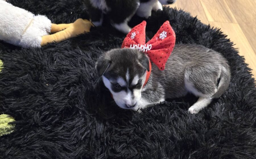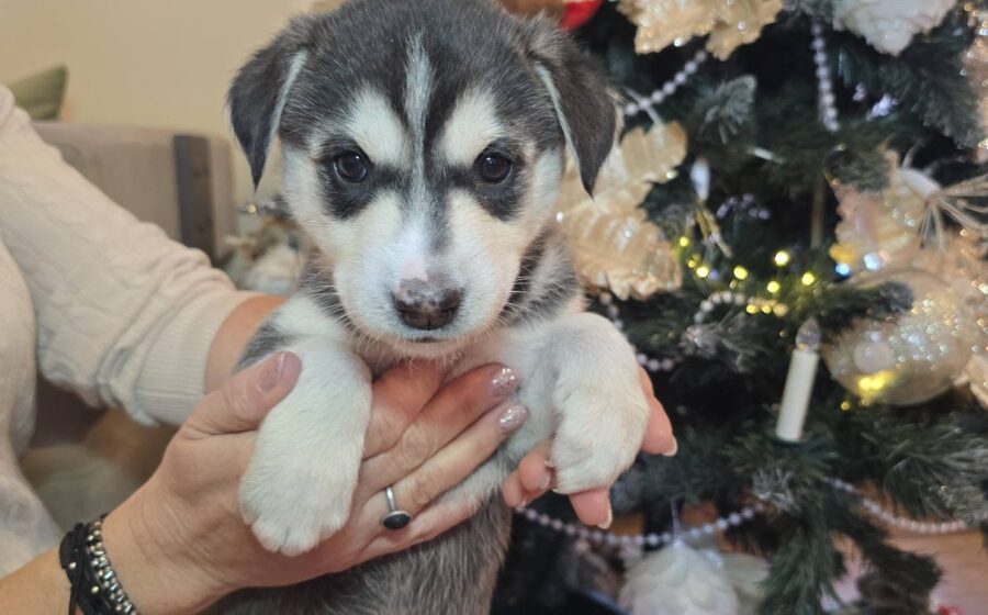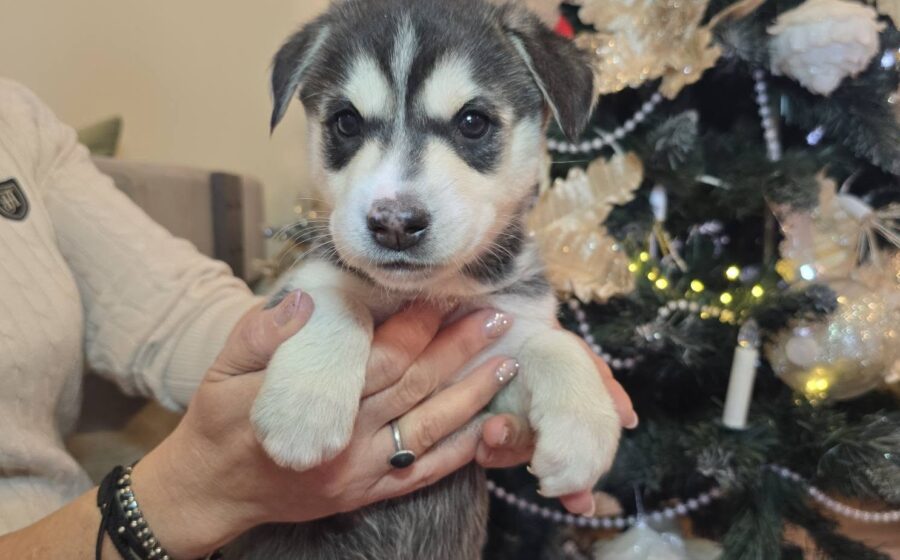 Dilay ist vermutlich ein Husky-Mix mit dunklen Augen und der typischen nordischen Fellzeichnung in Grau und Weiß. Ausgewachsen wird sie nicht nur eine mittlere Schulterhöhe erreichen und damit die perfekte Begleiterin sein, sondern auch mit ihrem wunderschönen Äußeren begeistern.
