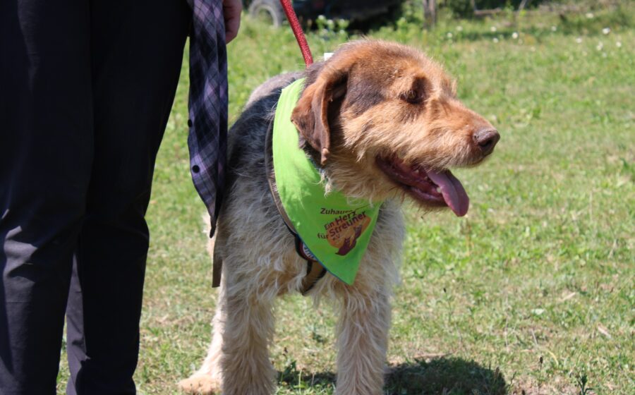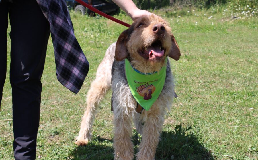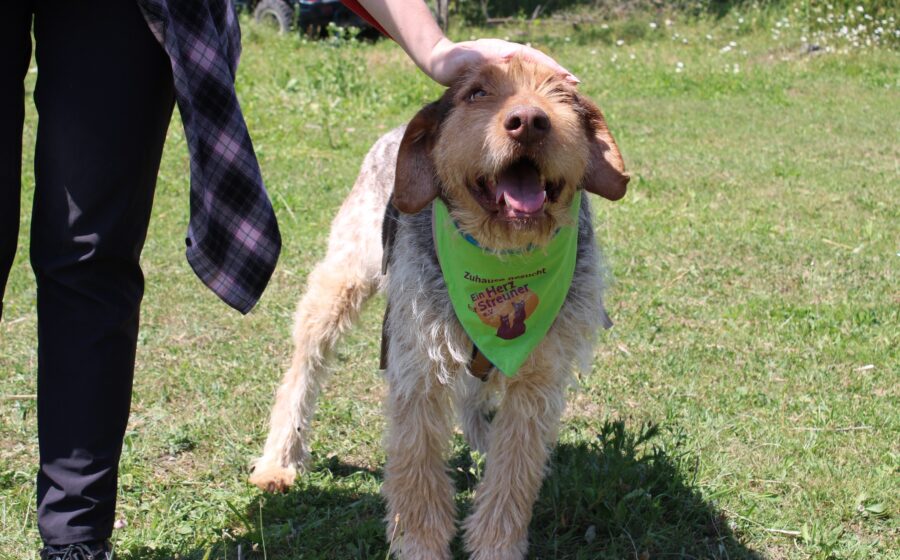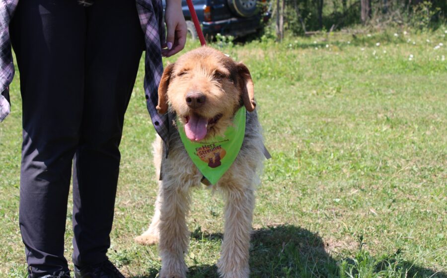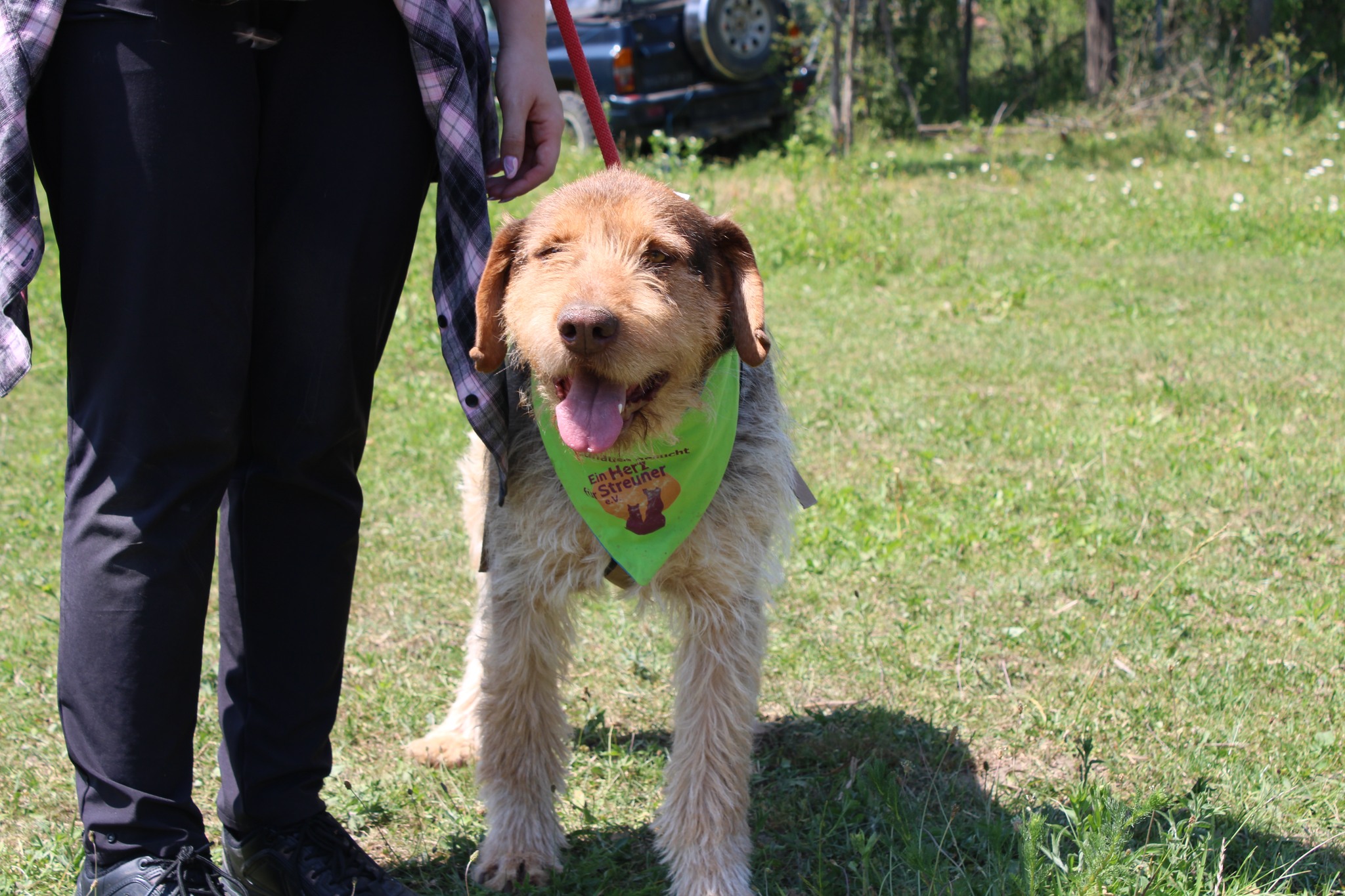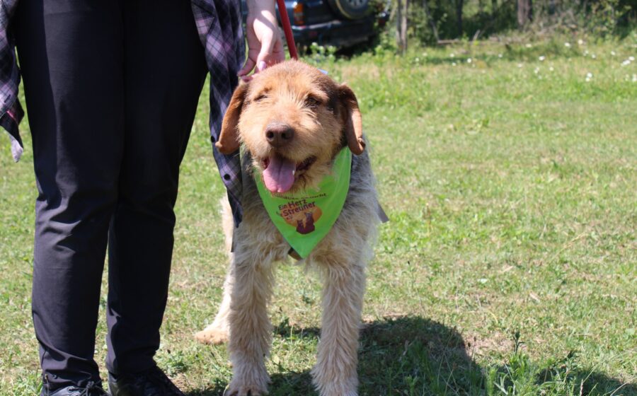 Djuke ist etwa 5 Jahre alt und bringt mit ca. 62 cm und 36 kg eine große Größe mit. Optisch erinnert er stark an einen Airedale Terrier – und auch charakterlich trägt er viele typische Eigenschaften dieser Rasse in sich: Er ist treu, verspielt, intelligent und familienfreundlich. Seine hohe Kooperationsbereitschaft und tiefe Loyalität gegenüber dem Menschen machen ihn zu einem echten Herzenshund, der das Potenzial hat, seinem neuen Menschen ein absoluter Seelenbegleiter zu werden.