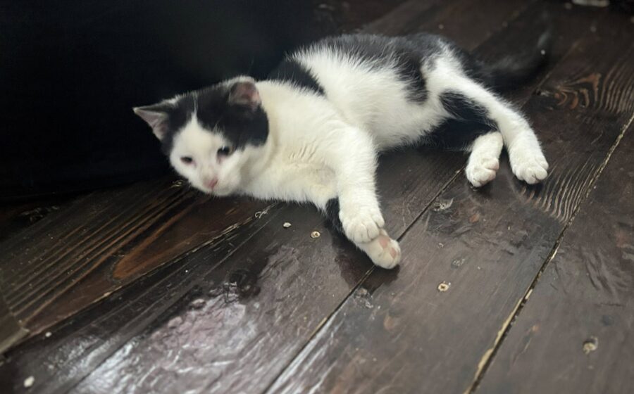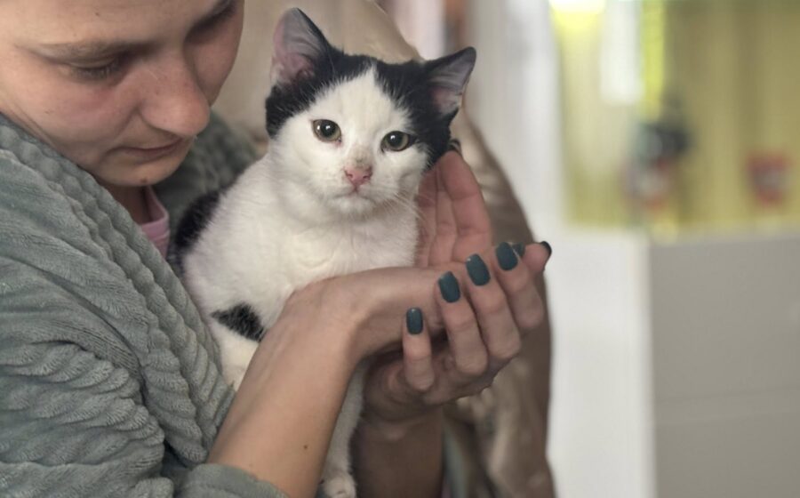 Dominos Geschichte beginnt an einem Ort, an dem niemand hinsieht. Er wurde zusammen mit einem weiteren Kitten auf dem Dachboden eines verlassenen Hauses gefunden. Beide waren winzig, schwach und völlig schutzlos. Für eines der beiden Babys kam jede Hilfe zu spät. Domino überlebte. Still, tapfer und mit einem unglaublichen Lebenswillen.