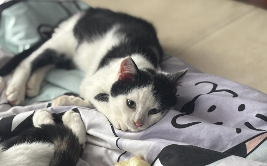 Von Anfang an zeigte er, dass in ihm ein kleiner Kämpfer steckt. Heute ist Domino ein fröhlicher, neugieriger Kater, der das Leben entdecken möchte. Er liebt Menschen, sucht Nähe und genießt Aufmerksamkeit. Spielen, Erkunden und Beobachten gehören zu seinen Lieblingsbeschäftigungen. Trotz seines schweren Starts hat er sich seine Offenheit und sein Vertrauen bewahrt.