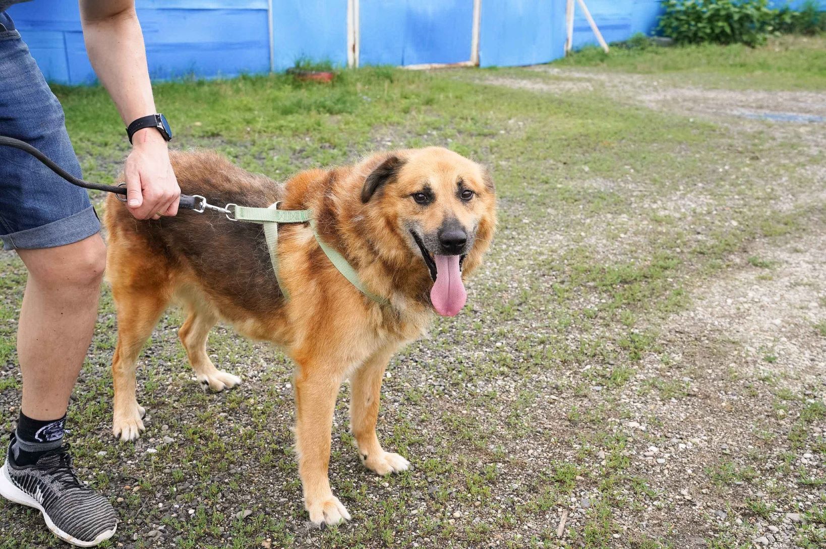 Mit ca. 55 bis 60 cm Schulterhöhe gehört Donny schon fast zu den großen Hunden. Er hat ein wunderschönes blond-schwarz gezeichnetes Fell und mit seinen dunklen, schwarz umrandeten Augen und seinem treuen Blick schaut er jedem tierlieben Menschen direkt ins Herz. Donny ist schätzungsweise 10 Jahre alt und trotz seiner schweren Vergangenheit hat er den Glauben an die Menschen nicht verloren. Er verhält sich sehr freundlich und lässt sich gerne streicheln. Mit allen Hunden ist er verträglich.