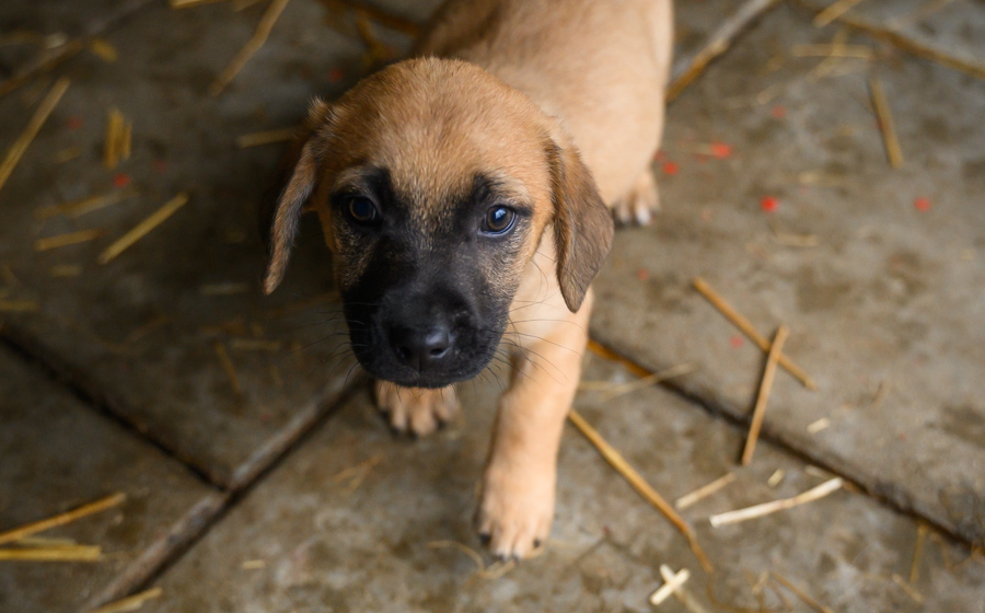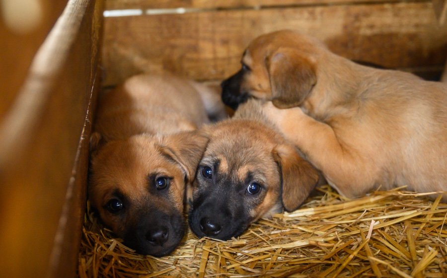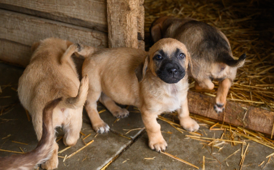 Mit seinen vier Schwestern tollt er im Zwinger herum oder kuschelt mit ihnen in der kargen Holzhütte. So wärmen sich die kleinen Zwerge gegenseitig und geben sich Halt.