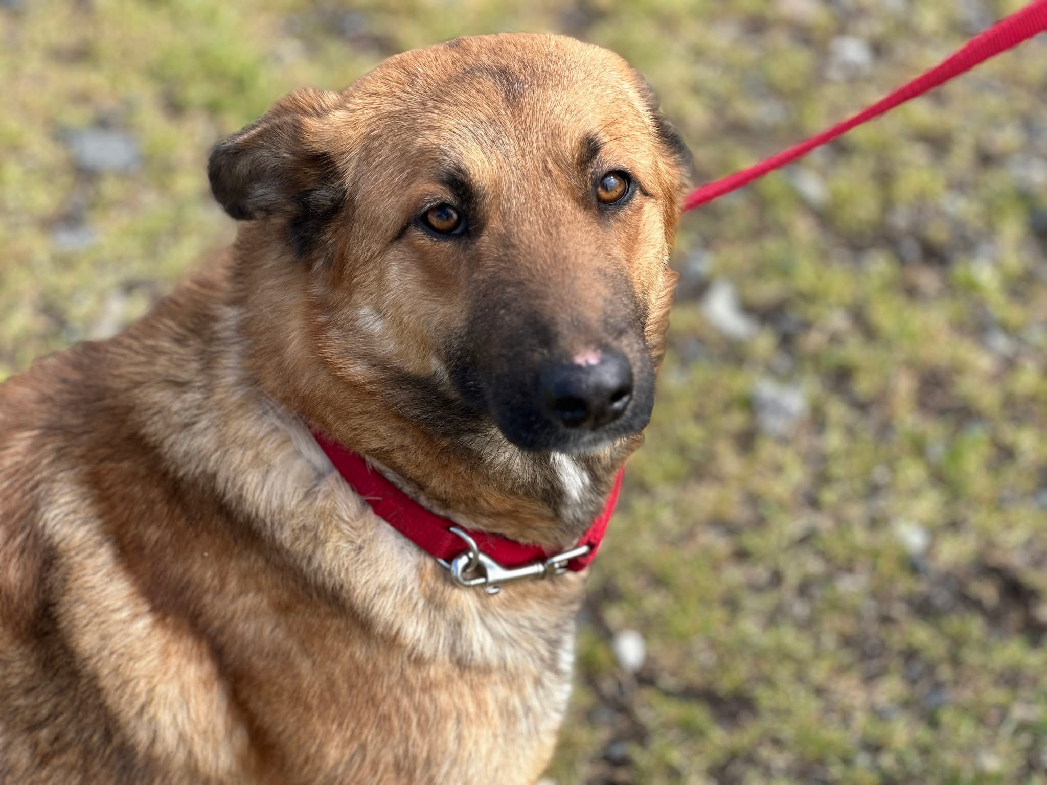 Duna schaut mit wunderschönen, hellbraunen Augen in die Kamera und sie ist fest entschlossen, sich einen Platz in einem besseren Leben zu ergattern. Sie scheint zu spüren, dass es jetzt um alles geht. Deshalb präsentiert sie sich in ihrer ganzen Schönheit. Dunas Fell ist weich und hellbraun bis hin zu schwarz gezeichnet und ihre Ohren sind aufmerksam gespitzt. Selbst hier unter den widrigen Shelter-Bedingungen kann man ihre Anmut erkennen, die sich sicherlich bei guter Pflege und in einem liebevollen Zuhause noch deutlicher ausprägen wird.