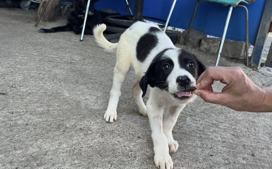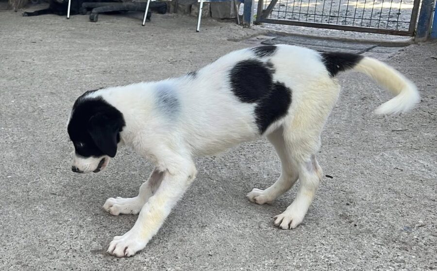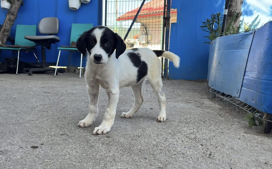 Effy hat weiches, weißes Fell mit schwarzen Flecken, glänzende, schwarze Knopfaugen und einen herzerweichenden Blick. Mit ernsten Augen schaut sie in die Kamera und berührt unser Herz. Die Süße wird voraussichtlich eine mittlere bis große Größe erreichen. Wir wünschen uns sehr, dass die tapfere Welpin die passenden Menschen findet, die ihr zeigen, wie schön das Leben sein kann.