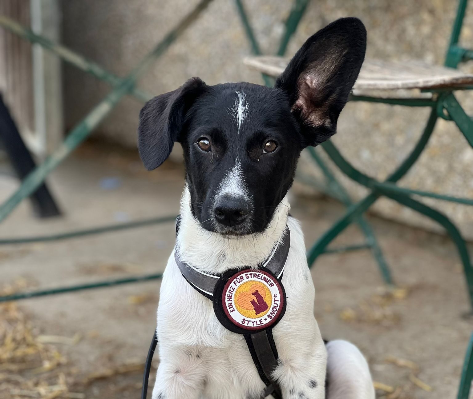 Elias ist ein liebevoller und zutraulicher Hund, der gerne kuschelt. Er hat keine Berührungsängste gegenüber fremden Menschen und zeigt sich offen und freundlich. Anfangs haben ihn Geräusche noch verunsichert, doch mit viel Liebe und Geduld hat er sich bereits an vieles gewöhnt. Er spielt gerne im Haus und draußen, läuft perfekt an der Leine und ist sehr auf den Menschen am anderen Ende der Leine orientiert.