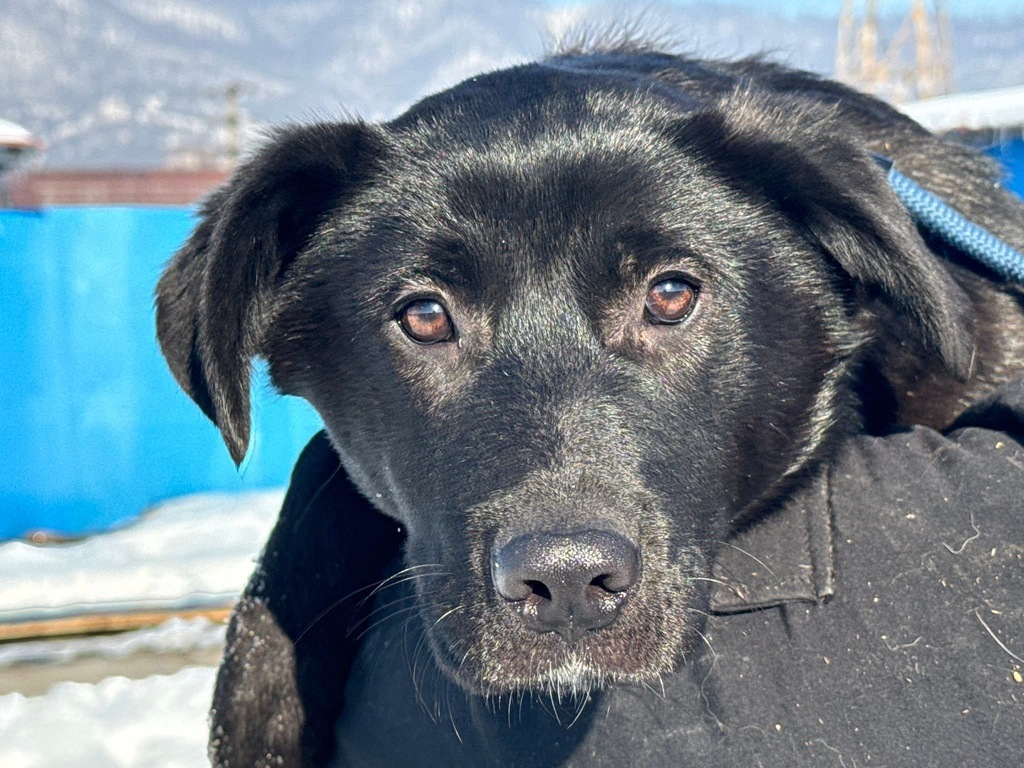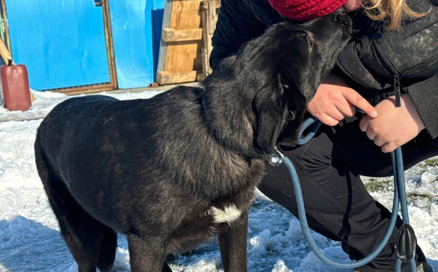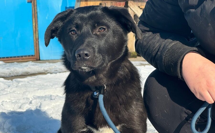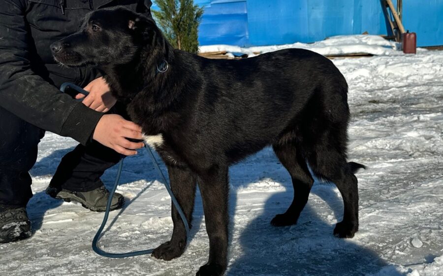 Eliza ist etwa 5 Monate alt und hat aktuell bereits eine Schulterhöhe von ca. 50–55 cm, weshalb sie ausgewachsen vermutlich ein mittelgroßer bis größerer Hund sein wird. Ihr schwarzes Fell wird von einem hübschen weißen Lätzchen geschmückt. Sie hat dunkelbraune, wache Augen, eine lackschwarze Nase und ein wunderschönes, ausdrucksstarkes Gesicht. Ihre schlanke Statur verleiht ihr eine elegante, fast zarte Erscheinung.