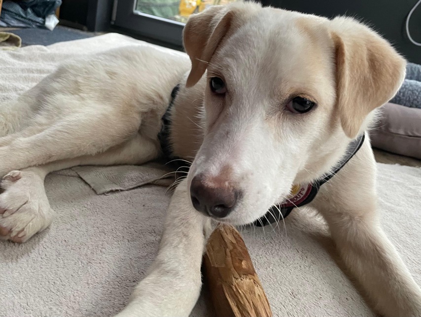 Denn Eliza wurde in Rumänien allein und verständlicherweise völlig verängstigt in einer Kiste im Wald gefunden, war krank und verletzt. Doch all das liegt hinter ihr – heute steht eine mutige, lebensfrohe junge Hündin vor uns, die endlich ankommen möchte.