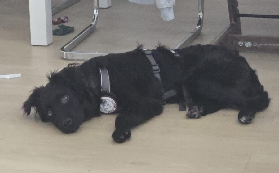 Das Alleinbleiben fällt Elmas derzeit noch schwer. Sobald seine Bezugsperson außer Sicht ist, beginnt er zu fiepen und sucht nach ihr. Hier benötigt er weiterhin geduldiges Training und Sicherheit. Im häuslichen Umfeld ist Elmas bereits stubenrein und zeigt sich auch nachts ruhig – er schläft entspannt in seiner Box neben dem Bett.