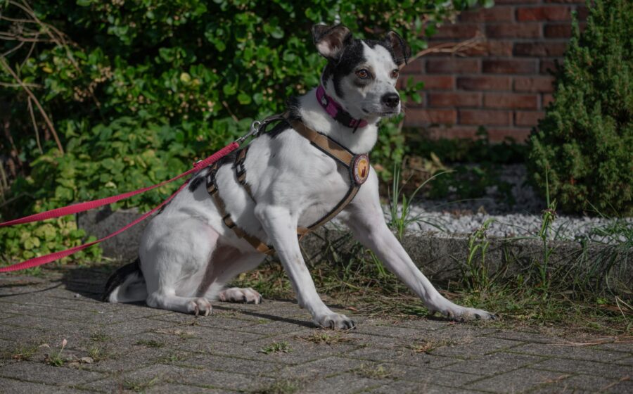 Elsa ist sozial und versteht sich sowohl mit dem vorhandenen Hundekumpel als auch mit der Babykatze gut im Haushalt. Sie zeigt draußen immer mehr Interesse, braucht aber Zeit, um sich mit den Gegebenheiten anzufreunden. Noch ist das Haus ihr sicherer Rückzugsort, dort hat sie schon den Ball entdeckt, mit dem man wunderbar mit den Kindern spielen kann. In kleinen Schritten darf sie nun lernen, wie es ist, die Welt außerhalb an einer Leine zu erkunden. Das Anlegen des Sicherheitsgeschirrs und auch der Leine ist mittlerweile kein Problem mehr.