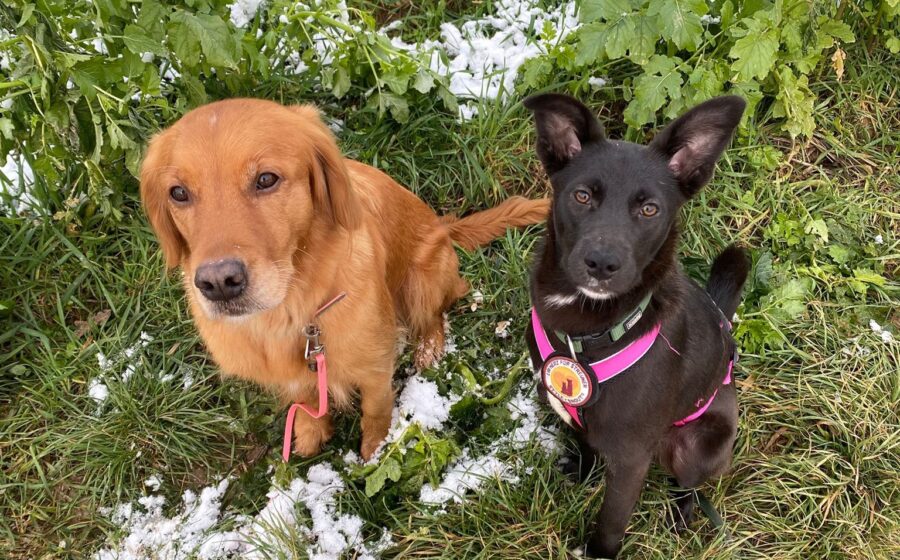Emma ist tagsüber total aufgeweckt und will viel erleben, abends kommt sie aber auch schon gut zur Ruhe und schläft nachts durch. Alltagslaute und Umwelteinflüsse wie Staubsauger, Föhn, Spülmaschine, Autos und sogar Baustellenlärm bereiten ihr keine Sorge. Vielmehr findet sie spannende Eindrücke, fremde Personen und andere Hunde motivierend, bleibt neugierig und relaxed. Sie ist sehr intelligent und beherrscht auch schon einige Grundkommandos. Sie läuft gut an der Leine, sehr stolz und mutig, und orientiert sich dabei stark am Ersthund. Mit diesem spielt sie ganz ruhig und freundlich, als wenn sie sich schon lange kennen würden. Das spiegelt ihr harmonisches Sozialverhalten wider.