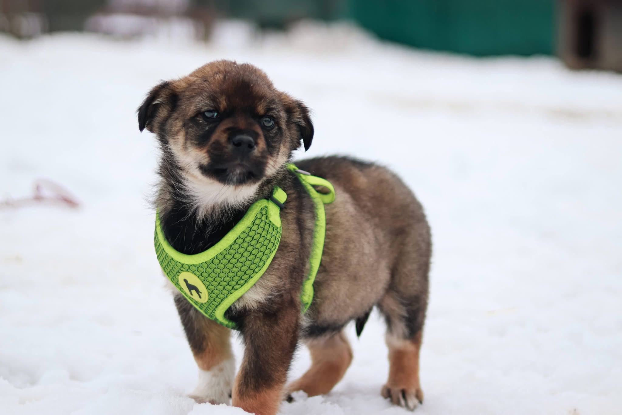 Der kleine Ernö ist erst ca. sechs bis acht Wochen alt und ein wunderschöner, kuscheliger Welpe mit einem entzückenden Gesichtchen und einem sanften, beinahe bescheidenen Blick. Sein Fell ist braun-schwarz mit kleinen weißen Abzeichen am Kinn und an der Brust, dazu dunkle Kulleraugen und eine glänzende schwarze Nase. Aktuell lässt sich seine spätere Größe noch nicht sicher einschätzen, doch Ernö wird voraussichtlich zu einem mittelgroßen bis größeren Hund heranwachsen. Aufgrund seines Aussehens kann auch ein Herdenschutzhund-Anteil nicht ausgeschlossen werden, weshalb wir uns Menschen wünschen, die offen dafür sind, sich mit den besonderen Eigenschaften solcher Hunde auseinanderzusetzen. Seine zukünftigen Menschen sollten sich daher mit den Besonderheiten von Herdenschutzhunden auseinandersetzen, idealerweise ländlich wohnen und über ausreichend Platz sowie ein gut eingezäuntes Grundstück verfügen.