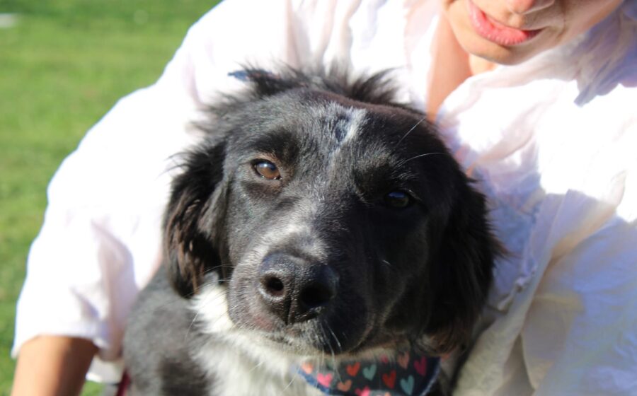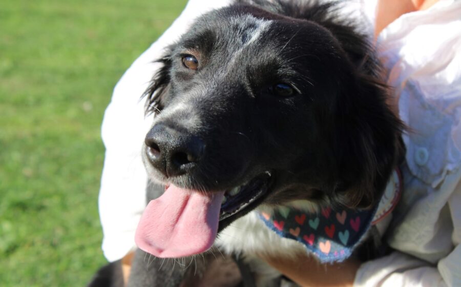 Fenna, deren Name „Frieden“ oder „friedlich“ bedeutet, ist eine junge Hündin mit weichem, überwiegend schwarzem Fell. Ihr Charme wird durch ihre weißen Socken mit grauen Sommersprossen, den hellen Farbtupfern hier und da und der weißen Blesse unterstrichen, die von ihrer Nasenspitze bis zur Stirn verläuft. Ihre dunklen sanften Augen machen Fenna zu etwas ganz Besonderem.