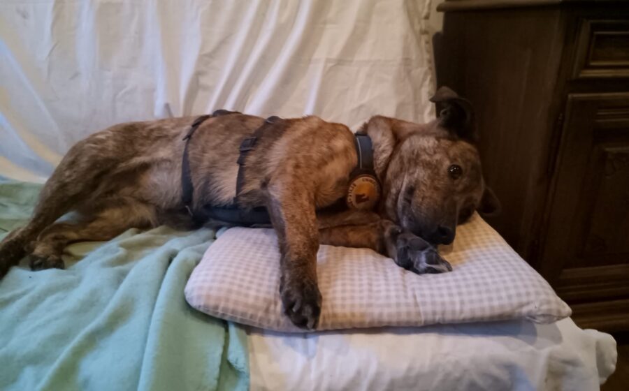 Sie wurde in Rumänien zusammen mit ihren vier Welpen in einer verlassenen Gegend gefunden. Zwei ihrer Kleinen verloren leider ihr Leben, noch bevor sie in Sicherheit waren. Für Fenya und ihre beiden überlebenden Welpen kam die Hilfe gerade noch rechtzeitig. Als sie in die Klinik gebracht wurde, befand sie sich in einem kritischen Zustand: Ihr Bauch war voller Flüssigkeit und es wurde eine Herzschwäche (interpulmonale Hypertonie) festgestellt. Diese wurde medikamentös mit Sildenafil eingestellt, worauf sie sehr gut anspricht und inzwischen völlig beschwerdefrei ist. Die monatlichen Kosten für die Medikamente liegen bei etwa 20 Euro, und Fenya ist damit fit und fidel und springt herum wie eine Junghündin.