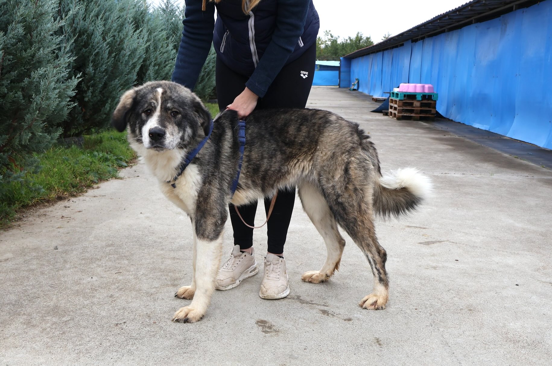 Die eindrucksvolle Fera gehört mit einer Schulterhöhe von ca. 70 cm zu den großen Hündinnen. Ihr Fell ist weich, dicht und grau-weiß gefleckt und sie hat ein freundliches Gesicht und eine schlanke und muskulöse Statur. Fera wird auf ein Alter von zwei Jahren geschätzt und hat damit das ideale Alter, nochmal ganz von vorne anzufangen. Die turbulente Zeit der Pubertät hat sie schon fast hinter sich gelassen und trotzdem ist sie noch jung und ihr ganzes Leben liegt noch vor ihr. Wir hoffen für sie, dass es ein glückliches wird.