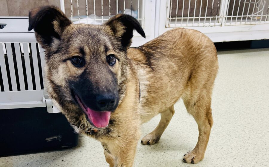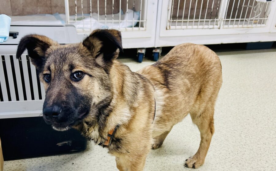 Fidelia ist ein hübsches Hundemädchen von etwa 5 – 6 Monaten. Mit ihren kurzen Beinchen glaubt man gar nicht, dass sie ein Deutscher Schäferhund-Mix ist, doch ihre Fellzeichnung und das putzige Gesicht lassen kaum Zweifel zu. Wir nehmen an, dass sie etwa mittelgroß werden wird, wenn sie erwachsen ist. Fidelia hat sich mittlerweile gut in der Pflegestelle bei Alina eingelebt. Sie ist sehr freundlich zu den Menschen. Sie liebt Kinder und ist mit den anderen Hunden sozial gut verträglich. Auch mit den Katzen möchte sie gerne spielen, da Fidelia aber sehr unter Hunger gelitten hat, zeigt sie durch vorsichtiges Knurren, dass sie ihren Napf nicht mit ihnen teilen möchte. Noch ist Fidelia ein wenig dünn, aber sie wird weiterhin gut versorgt und liebevoll aufgepäppelt.