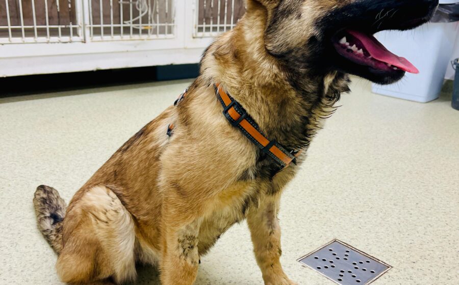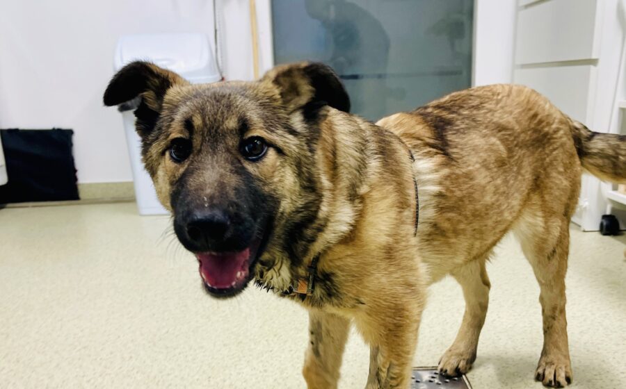 Fidelia wurde in einem mitleiderregenden Zustand nahe Bistrita auf einer Brücke gefunden. Wie wir später erfuhren, wurde das kleine Hundemädchen meistens an der Kette gehalten und nur selten freigelassen. Ausgerechnet in der Nacht, in der ihr Besitzer Fidelia ausnahmsweise frei herumlaufen ließ, wurden in der Nähe Feuerwerkskörper gezündet, die dem armen Hundekind furchtbare Angst einflößten. Fidelia lief panisch vom Hof – und der Besitzer kümmerte sich nicht weiter um das traumatisierte Tier. So landete Fidelia in den Händen unserer Tierschützerin Alina, die sofort Kontakt mit Tierärzten aufnahm und sie medizinisch versorgen ließ.