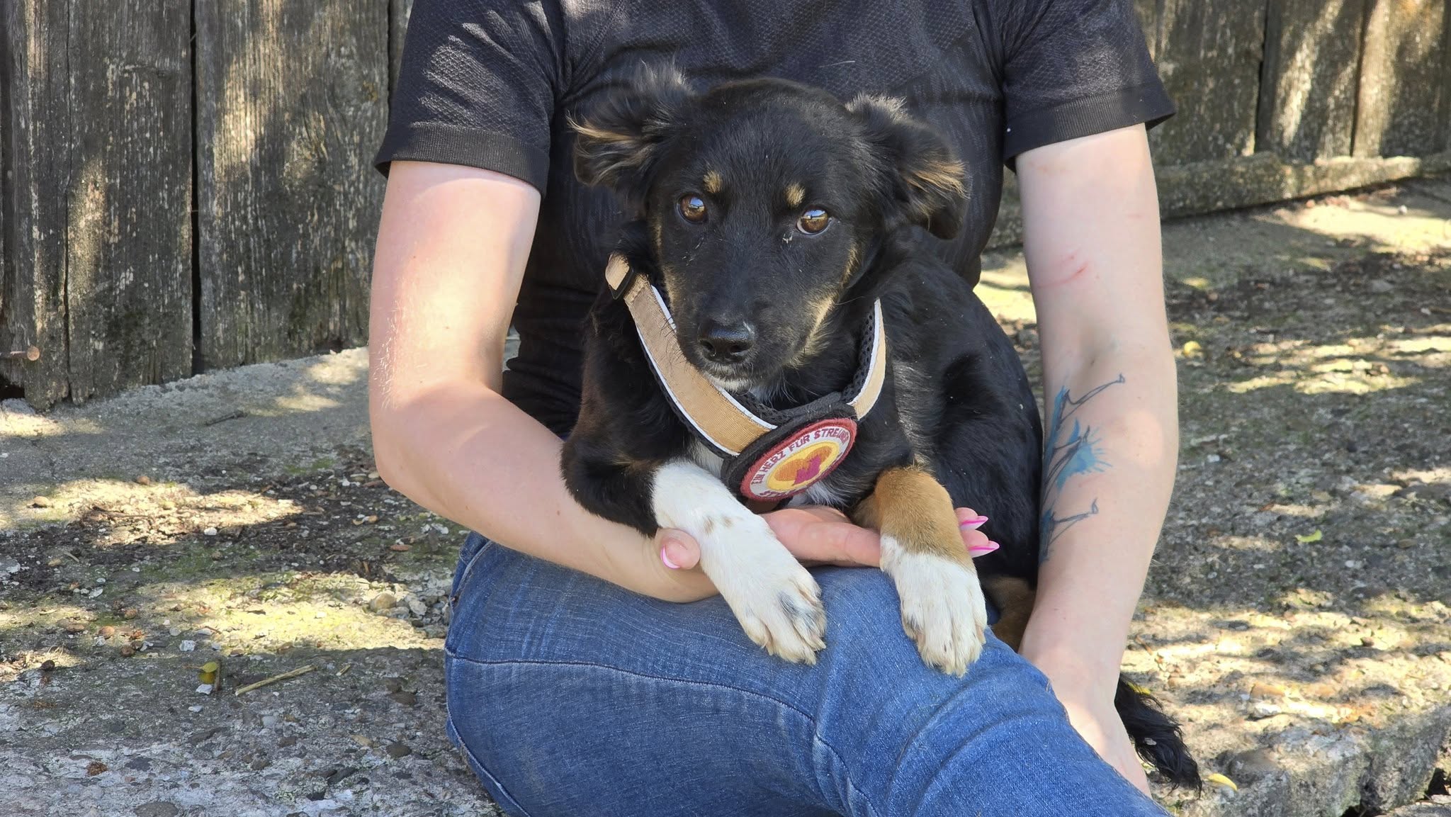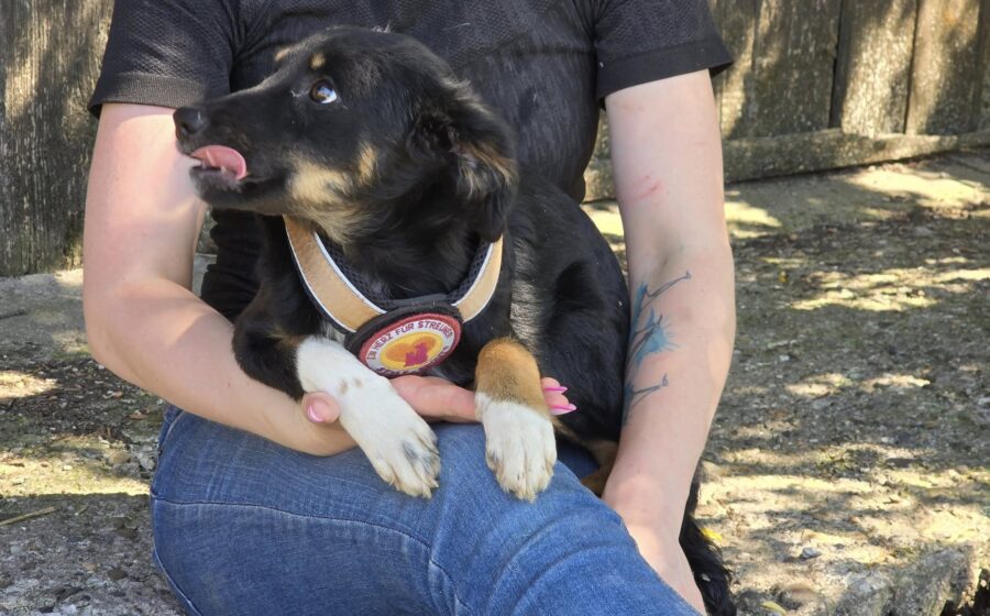 Mit ihren 4-5 Monaten ist Fidelia noch ein echter Welpe und wird voraussichtlich eine mittlere Größe erreichen. Welche Rassen in ihr stecken, lässt sich nicht sagen, denn sie ist eine waschechte „reinrassige Streunerin“. Die verspielte und freundliche Hündin ist bestens mit anderen Hunden verträglich und liebt es, Zeit mit ihnen zu verbringen. Ob sie sich auch mit Katzen versteht, wissen wir nicht.