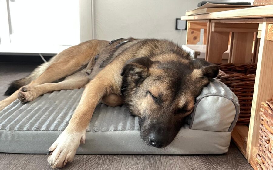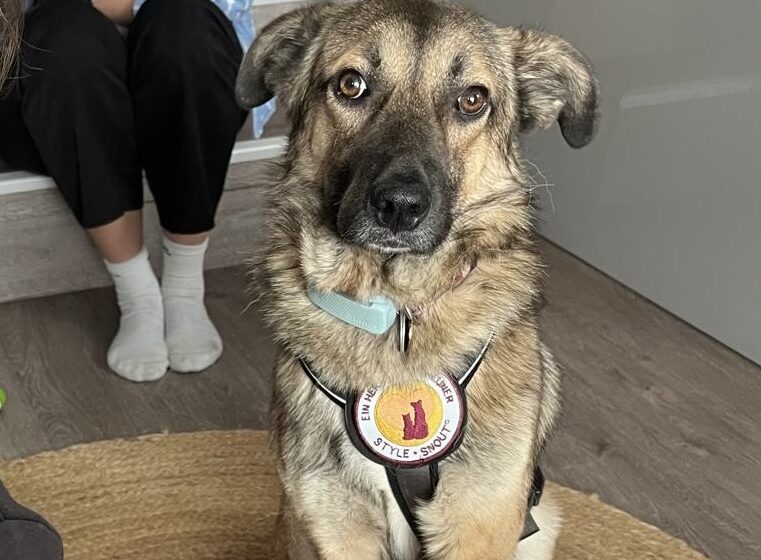 Der etwa 1,5-jährige Rüde präsentiert von morgens bis abends von seiner besten Seite: freundlich, ausgeglichen und gleichzeitig interessiert an seiner Umwelt. Er lebte bereits unkompliziert mit einer Hündin zusammen und legt durchweg ein sehr soziales Verhalten an den Tag – egal, ob beim Schlafen, Fressen oder Spielen. Finn sucht aktiv menschliche Nähe, liebt es zu kuscheln, lässt sich problemlos überall anfassen und folgt Bezugsperson sehr schnell voller Vertrauen auf Schritt und Tritt. Bei fremden Personen ist er erst einmal vorsichtig, taut aber schnell auf – ein wahres Goldstück mit sanftem Wesen. Eine positiv arbeitende Hundeschule kann trotz aller positiven Eigenschaft mehr Selbstsicherheit in sein Leben bringen.