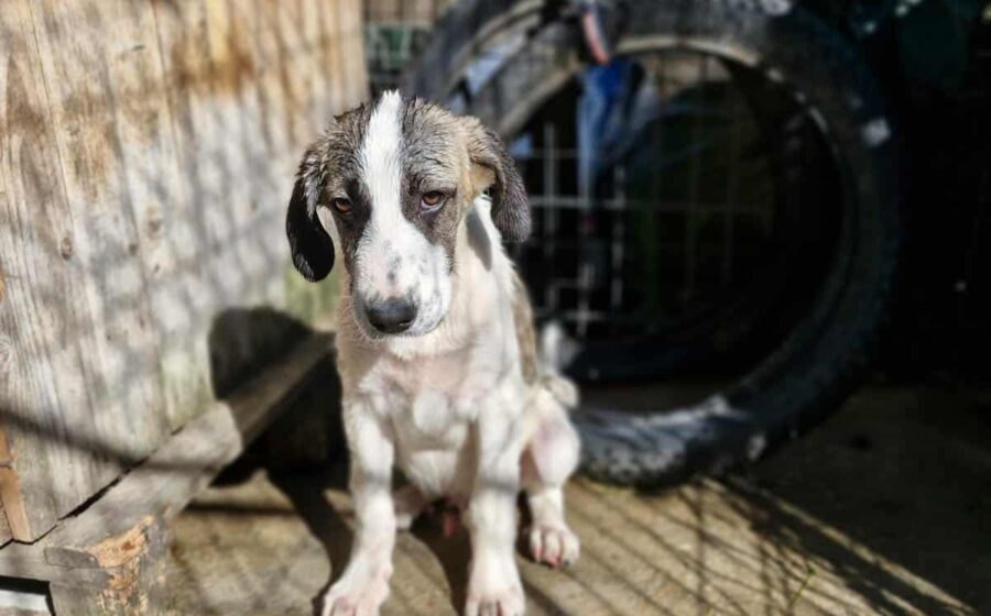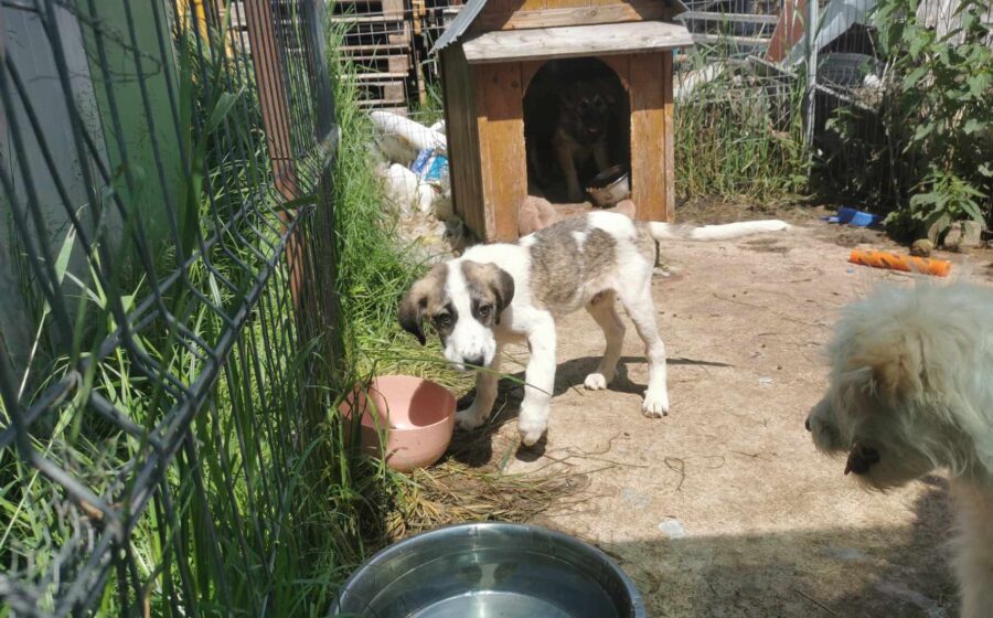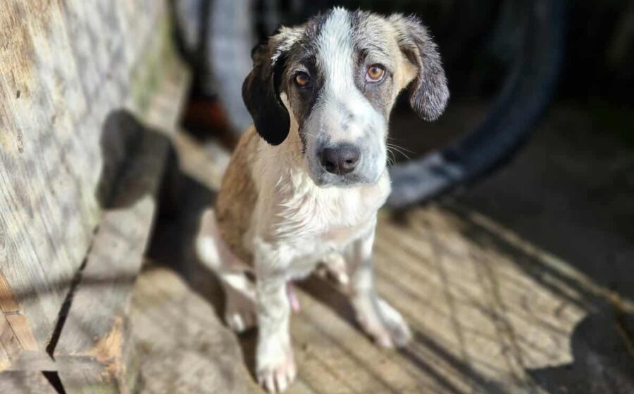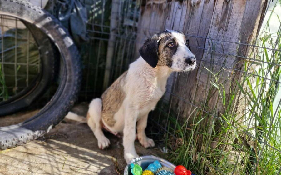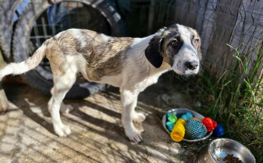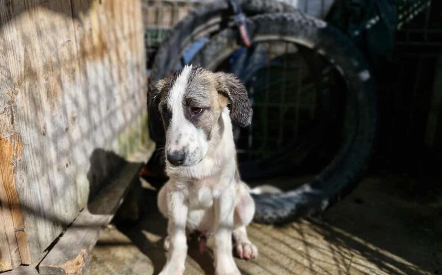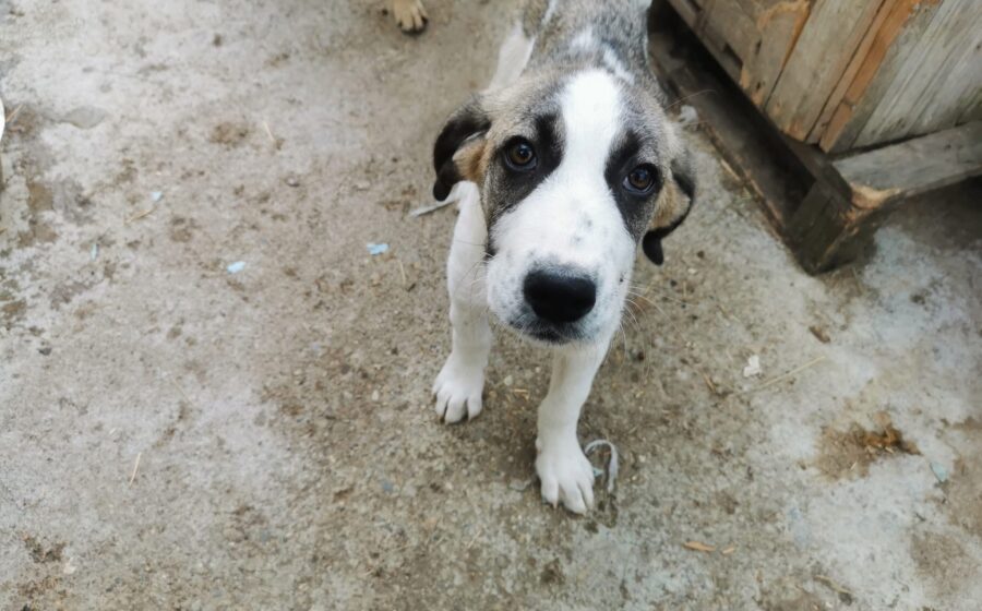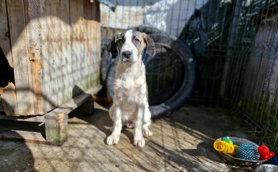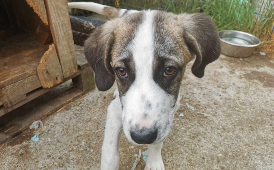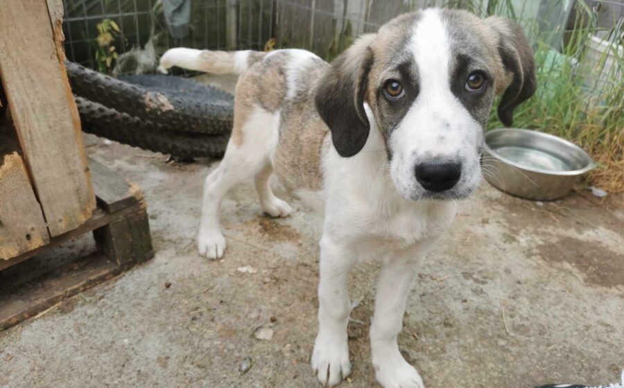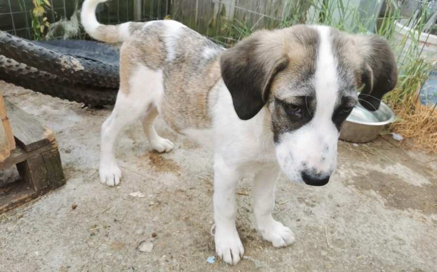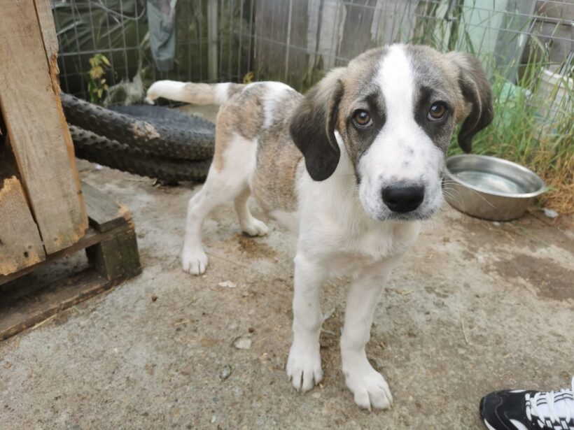 Inzwischen wurde der kleine Schatz auf einer privaten Pflegestelle in Rumänien aufgenommen, wo er mit weiteren Hundekindern in einem Zwinger lebt und er erstmal aufgepäppelt wird. Sein Bein ist komplett verheilt – doch was viel schwerer wiegt, ist sein gebrochenes Herz. Seine Augen zeigen Trauer und  Schmerz – nicht die Fröhlichkeit und Unbekümmertheit die sie bei einem 4 Monate alten Welpen eigentlich ausstrahlen sollten. Und doch… ist da dieser kleine Funke. Als würde er ganz leise fragen: „Gibt es da draußen eine Familie für mich?“