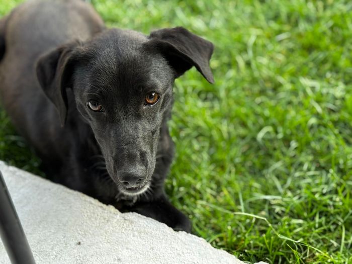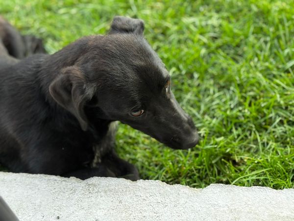 Die kleine Fiola wurde allein auf einem Feld gefunden, zurückgelassen, wie so viele. Doch das Glück war auf ihrer Seite: Eine fürsorgliche Familie nahm sie in Pflege, und dort zeigt sich, was für ein kleiner Sonnenschein sie ist. Offen, freundlich, fröhlich und voller Lebensfreude, Fiola strahlt von innen, ganz unabhängig von ihrem schwarzen Fell.