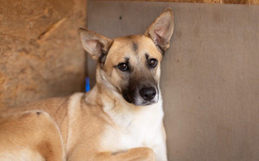 Fira ist eine wunderschöne, etwa vier Jahre alte Hündin. Mit ihren etwa 53 Zentimetern Schulterhöhe ist sie ein mittelgroßer Schatz, der durch ihr Erscheinungsbild sofort ins Herz trifft. Ihr Fell ist oberhalb hellbraun, unten weiß – ein zartes Lätzchen und weiße Pfötchen schmücken sie wie ein kostbares Kleid. Ihre Gesichtszeichnung ist einzigartig: eine dunkle Schnauze, die ihre sanfte Natur widerspiegelt, und eine lackschwarze Nase, die neugierig und vorsichtig zugleich wirkt. Ihre braunen Augen sind wie Fenster zu einer Seele, die noch viel zu erzählen hat.