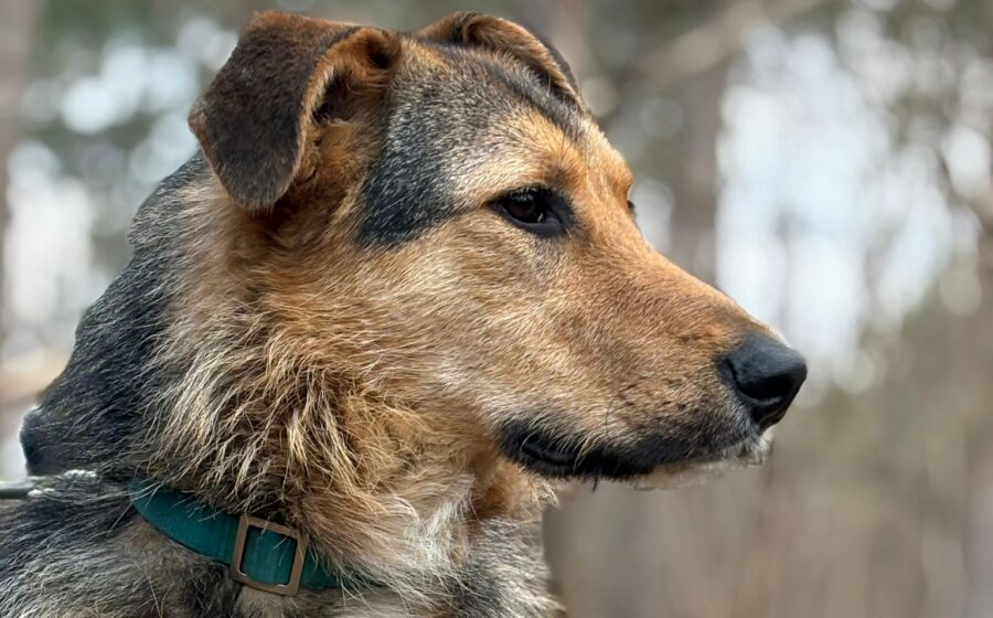 Mit einer Schulterhöhe von etwa 53 cm und rund 22 kg bringt Flinti eine angenehme Größe mit. Er ist sportlich genug für gemeinsame Aktivitäten und gleichzeitig ein Hund, der auch entspannt mit auf dem Sofa liegen kann. Sein mehrfarbiges Fell und die weißen Pfoten, die wie kleine Socken wirken, geben ihm ein ganz besonderes Aussehen. Vermutlich steckt in ihm ein bunter Mix verschiedener Rassen, optisch und vom Temperament her erinnert er an einen Terrier Mischling.