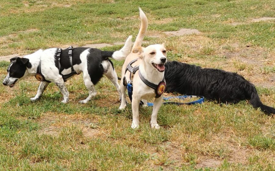 Mit anderen Hunden versteht sich Flip bestens. Sie spielt sehr gerne und ist eine aktive Hündin mit großem Kontakt-Bedürfnis zu „ihren“ Menschen.