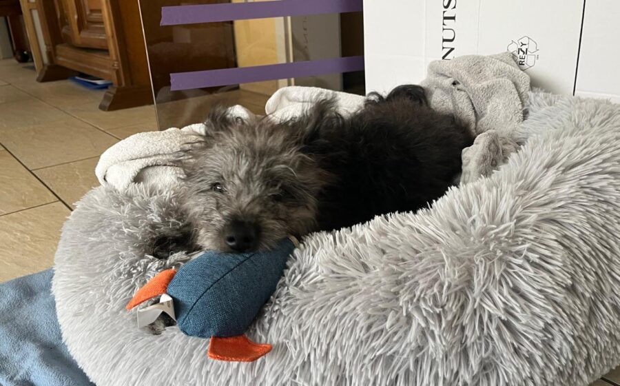 Das erste Bad war ein super entspanntes Erlebnis. Floki genoss eine kleine Massage und begrüßte das Extra Trockenrubbeln mit einem zweiten Handtuch. Auch so mag er ab und zu eine kleine Massage zum Einschlafen.
