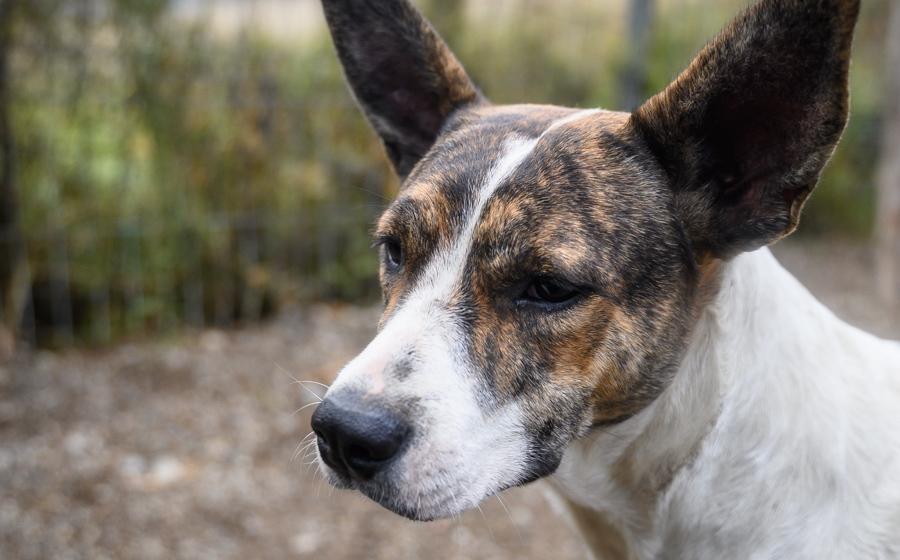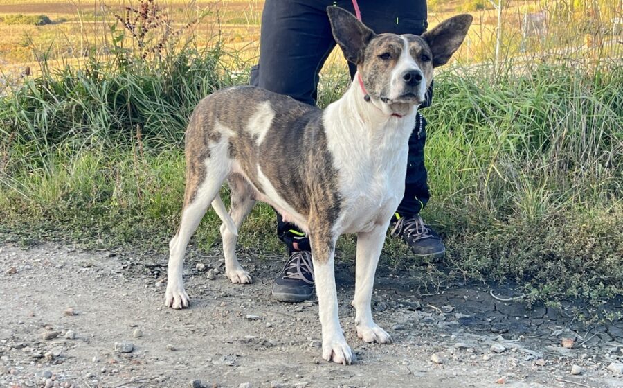 Ihr markanter Kopf und die großen, aufmerksamen Ohren machen sie zu einem echten Hingucker. Floppy ist eine mittelgroße Hündin mit einer Schulterhöhe von etwa 55 Zentimetern und einem athletischen, harmonischen Körperbau. Ihr Fell ist kurz, glatt und pflegeleicht. Es zeigt eine wunderschöne Mischung aus Weiß und verschiedenen.