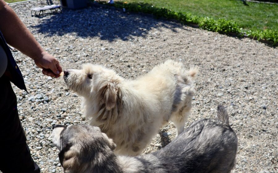 Mit anderen Hunden versteht sich Fluffy prima und er kann auch immer öfter in den Auslauf rausgelassen werden, was ihm sehr gut tut. Er zeigt auch keinen Futterneid. Auch den Menschen gegenüber ist er sehr neugierig und nimmt schon vorsichtig Leckerlies aus der Hand. Mit seiner blonden Mähne sieht er unwiderstehlich süß aus. Am liebsten möchte man ihn nur kuscheln. Er brauchte dringend Fellpflege und so wurde er aktuell komplett geschoren, da das verfilzte Fell ihm schon Probleme bereitete. Fluffy sollte daher regelmässig gekämmt und gebürstet werden, damit sein Fell nicht verfilzt.