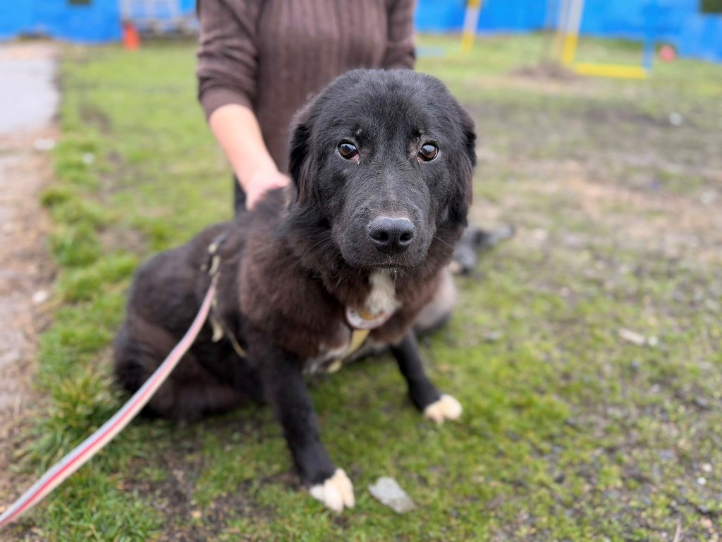 Mit ihrem weichen, schwarzen Fell und den weißen Abzeichen an der Brust und an den Pfotenspitzen ist Franzi eine wunderschöne, junge Hündin. Ausgewachsen wir sie wahrscheinlich eine mittlere Größe erreichen.