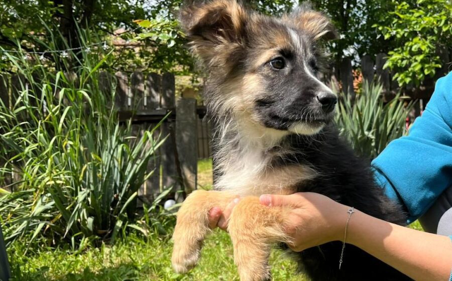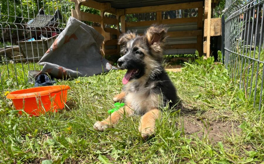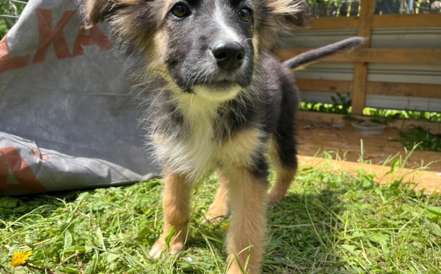 Unser kleiner Fussel ist gerade mal 3 Monate alt und hat noch sein ganzes Leben vor sich. Im Gegensatz zu seinem Bruder Faris hat Fussel das Fell eines Langhaarschäferhundes. Es fühlt sich so weich und seidig an, dass man am liebsten immerzu darüberstreichen möchte. Mit seinem schwarzen Fell, dem weißen Streifen im Gesicht und den lustigen Knickohren, die sich noch nicht entscheiden können, in welche Richtung sie sich drehen möchten, ist der Kleine einfach ein Hingucker.