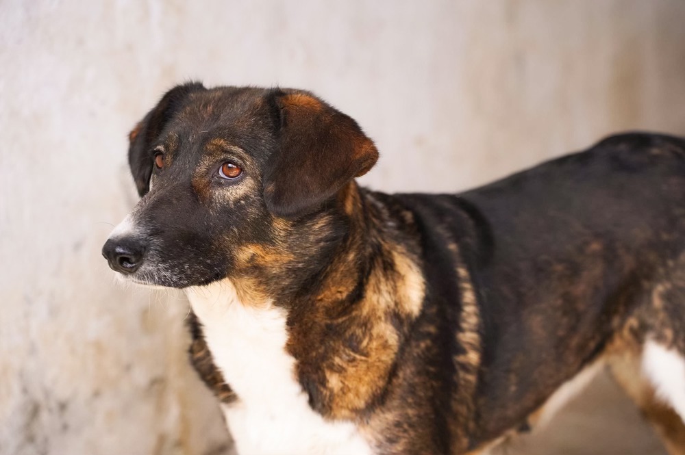 Gaia ist eine wunderschöne, mittelgroße etwa 2 Jahre alte Hündin mit einer Schulterhöhe von rund 50 cm. Ihr Fell zeigt eine Mischung aus schwarzem und braunem Schimmer an Kopf, Hals und Rücken, während sie ein strahlend weißes Lätzchen, eine weiße Schnute, einen weißen Bauch und weiße Beine trägt. Ihre Rute, ebenfalls in schwarz-braun gehalten, hat eine bezaubernde weiße Spitze. Ihr Gesicht ist von einer atemberaubenden Gesichtszeichnung geprägt – und ihre braunen Augen leuchten voller Hoffnung und Sanftmut. Ihre schwarze Knopfnase unterstreicht das freundliche, fast liebevolle Wesen, das sie ausstrahlt. Sie hat eine sportliche Statur und wirkt, als wäre sie bereit, die Welt zu erobern – mit einem ganz besonderen Menschen an ihrer Seite.