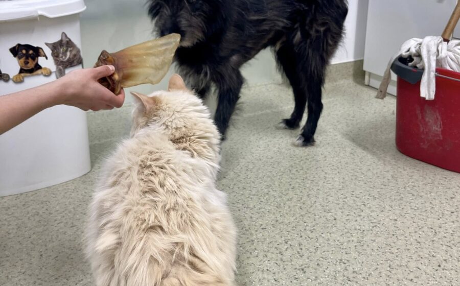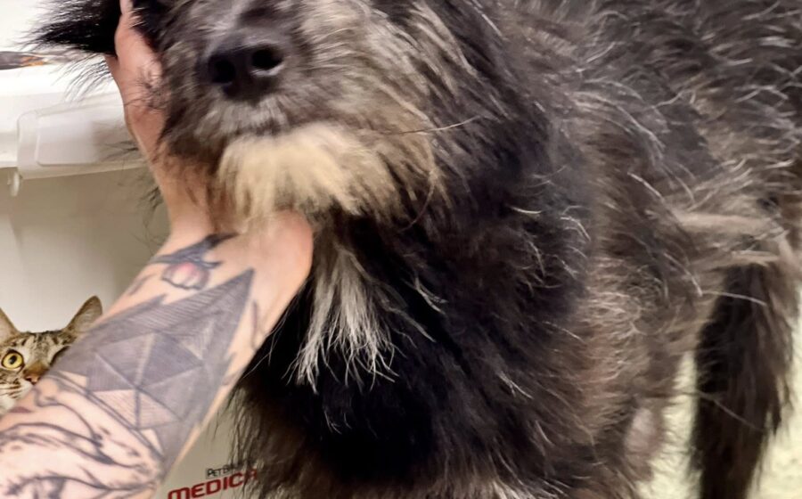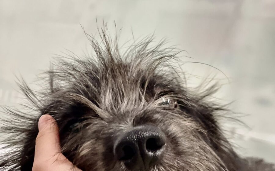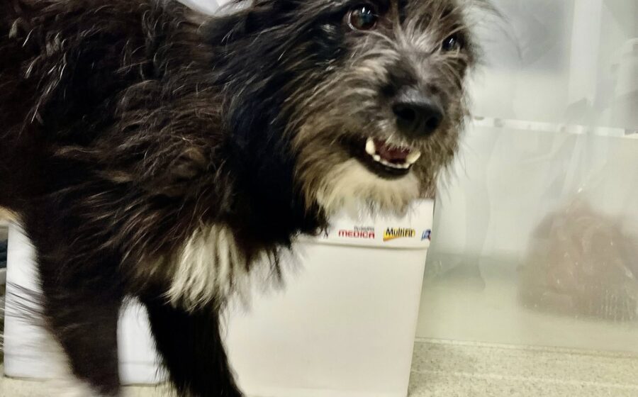 Geppettos Zwerchfell war kaputt, er musste operiert werden und verbrachte zwei Monate in der Praxis unserer fantastischen Ärztin Roxana. Nun geht es ihm den Umständen entsprechend gut und Roxana hat unseren struppigen Patienten an Fleischbällchen gewöhnt, die er begeistert schmaust. Aus diesem Grund hat er von ihr diesen süßen Spitzname bekommen.
