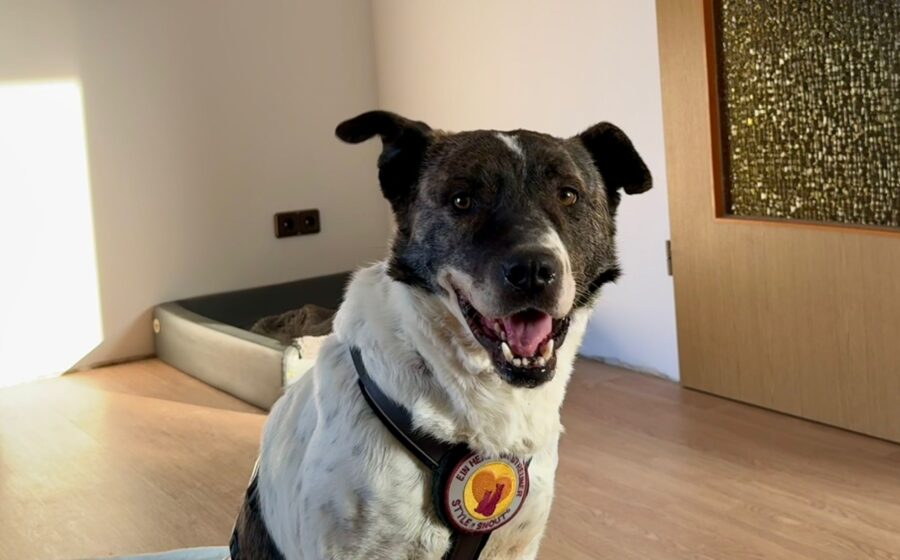 Goethe ist etwa zwei Jahre alt, mittelgroß und hat eine Schulterhöhe von rund 55 cm. Sein überwiegend weißes Fell ist von dunklen Akzenten durchzogen, die sein elegantes Erscheinungsbild unterstreichen. Seine lackschwarze Nase und die freundlichen braunen Augen erzählen von Sanftmut und Hoffnung. Er ist schlank, sportlich und einfach wunderschön – ein Rüde, der nicht nur äußerlich, sondern auch mit seinem Wesen bezaubert. Charakterlich zeigt sich Goethe sehr freundlich, offen und gutmütig. Mit Hündinnen versteht er sich gut, bei Rüden können wir dies derzeit noch nicht sicher sagen, da entsprechende Tests noch ausstehen.