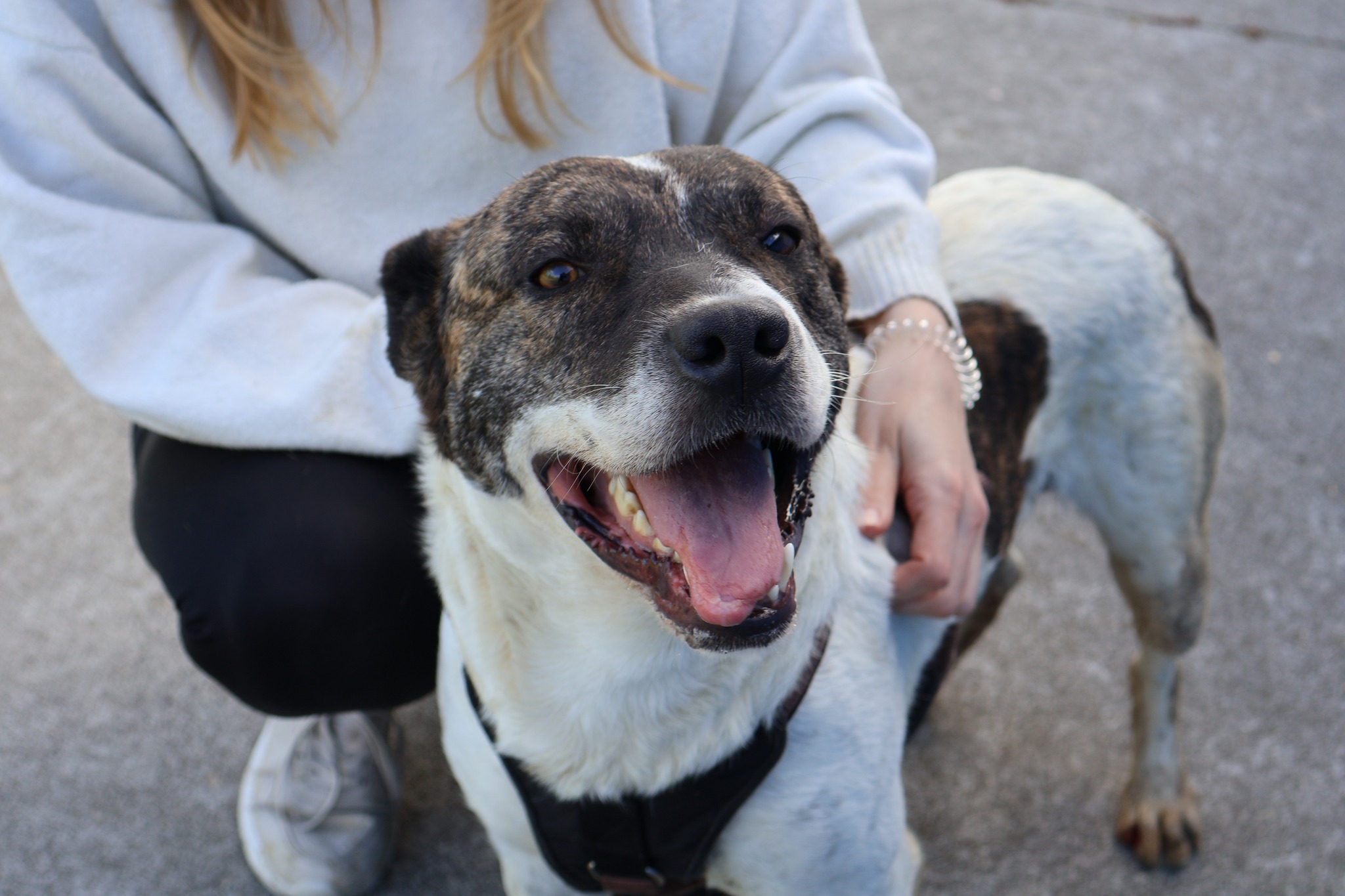 Goethe ist etwa zwei Jahre jung und mittelgroß mit einer Schulterhöhe von rund 55 cm. Sein Fell ist überwiegend weiß, durchzogen von dunklen Akzenten, die sein elegantes Erscheinungsbild noch unterstreichen. Seine lackschwarze Nase und die freundlichen, braunen Augen erzählen von Sanftmut und Hoffnung. Er ist schlank, sportlich und einfach wunderschön – ein Rüde, der nicht nur äußerlich, sondern auch mit seinem Wesen bezaubert. Vom Wesen her zeigt sich Goethe als sehr freundlicher Hund, offen und gutmütig. Mit Hündinnen versteht er sich prima, bei Rüden können wir es derzeit noch nicht sicher sagen, da es noch nicht getestet wurde.