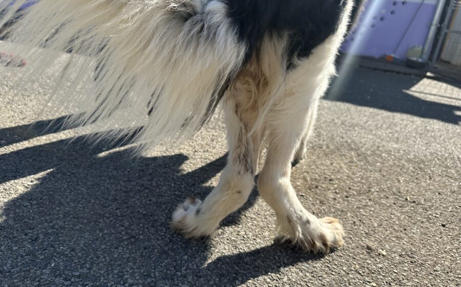 Leider hat sie eine Fehlstellung der Hinterbeine, vermutlich aufgrund eines Kalizummangels im Welpenalter. Es könnte auch eine Kuhhessigkeit sein, die auch bei Hunden auftreten kann. Dies ist eine Fehlstellung im Körperbau, bei der die Sprunggelenke der Hinterbeine nach innen gedreht sind und somit die Zehen nach außen zeigen. Die Behandlung von Kuhhessigkeit besteht darin, dieses Muskelungleichgewicht durch gezielte Übungen zu korrigieren, die die inneren Hüftrotatoren stärken und die äußeren Hüftrotatoren verlängern. Da es sich bei diesen Muskeln um Haltungsmuskeln handelt, ist die richtige Körperhaltung der effektivste Weg, dies zu erreichen. Gerne helfen wir als Verein dabei, Graziella u.a. mit Physio wieder in eine bessere Körperhaltung zu bekommen und sie zu unterstützen.