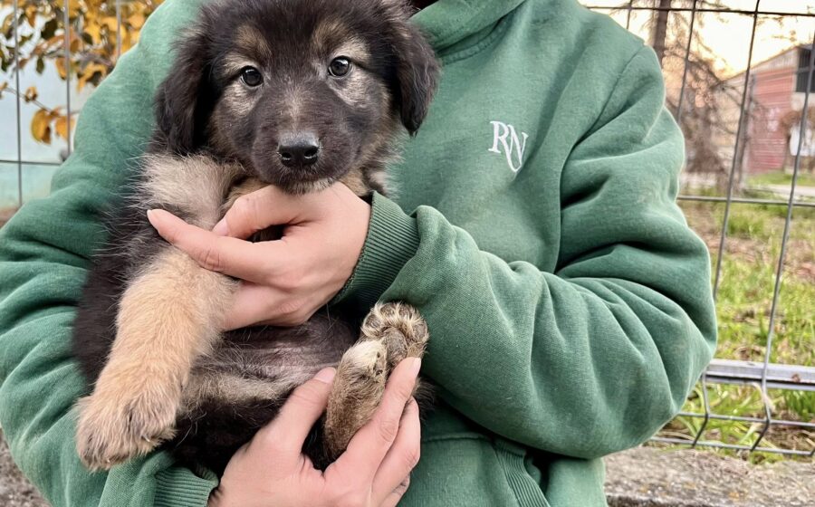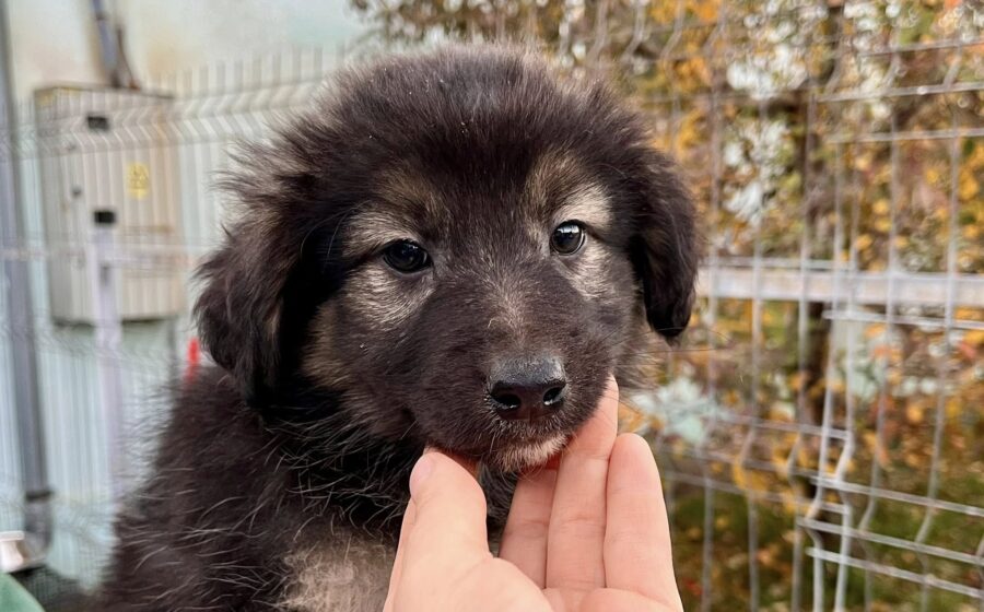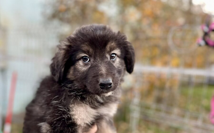 Ihre Mutter hat eine Schulterhöhe von etwa 48 cm und wiegt rund 15 kg, daher wird auch Greta vermutlich mittelgroß werden. Noch wiegt sie mit ihren etwa 2 Monaten erst rund 2 kg. Ihr dichtes, dunkles Fell und ihre flauschige Erscheinung lassen vermuten, dass in ihr Hütehund- oder Herdenschutzhundgene stecken könnten – also kluge, aufmerksame und lernfreudige Gene.