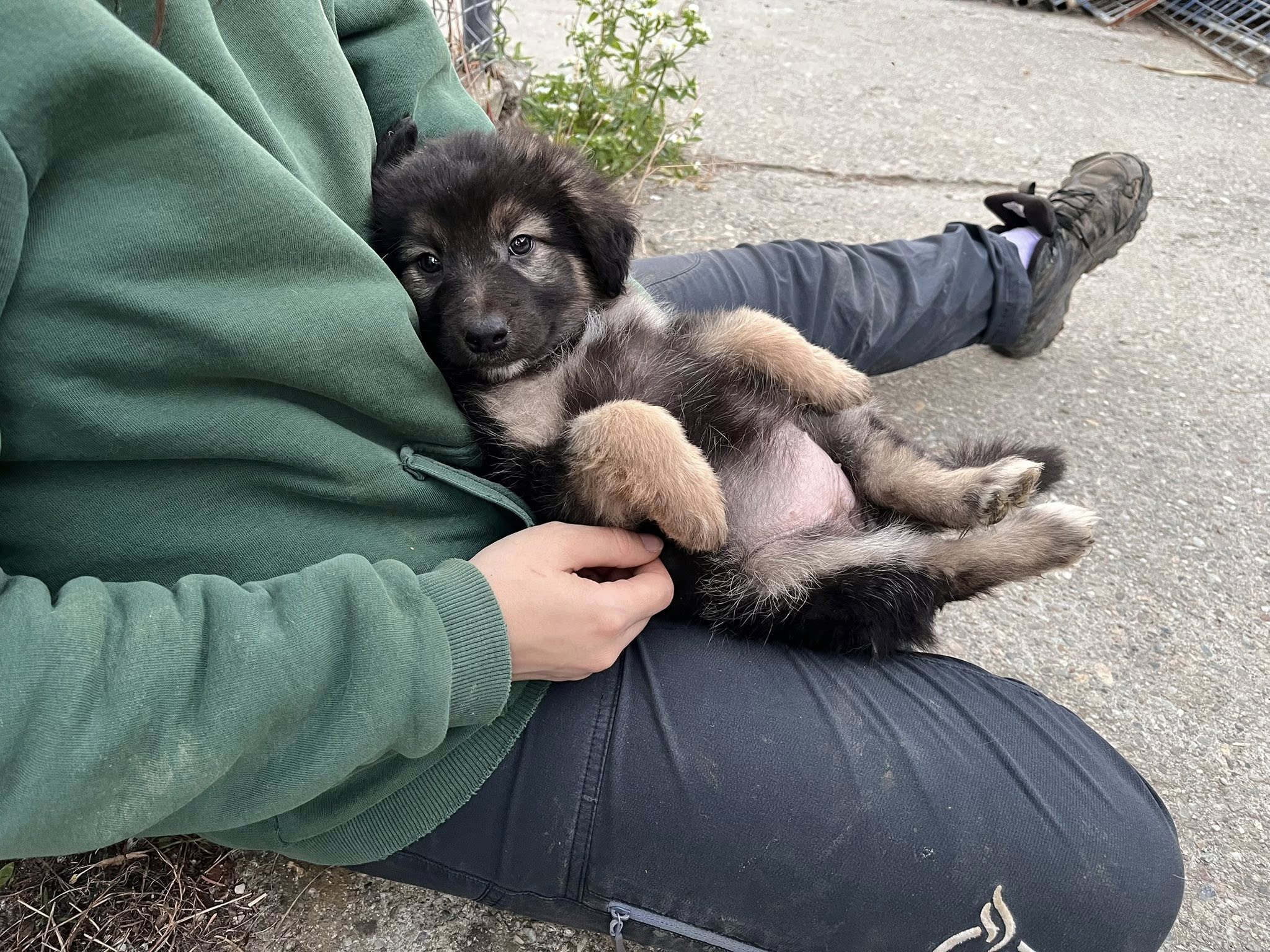 Greta ist eine freundliche, verspielte und menschenbezogene junge Hündin. Sie liebt es, gestreichelt zu werden, und genießt den Kontakt zu Menschen sehr. Wie es sich für einen Welpen gehört, erkundet sie neugierig ihre Umgebung, spielt fröhlich mit ihren Geschwistern und freut sich über jede Aufmerksamkeit. Auch mit anderen Hunden versteht sich Greta sehr gut.