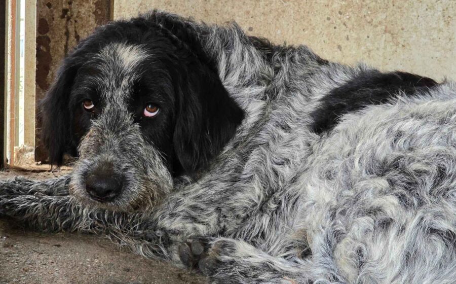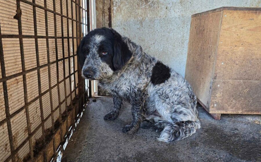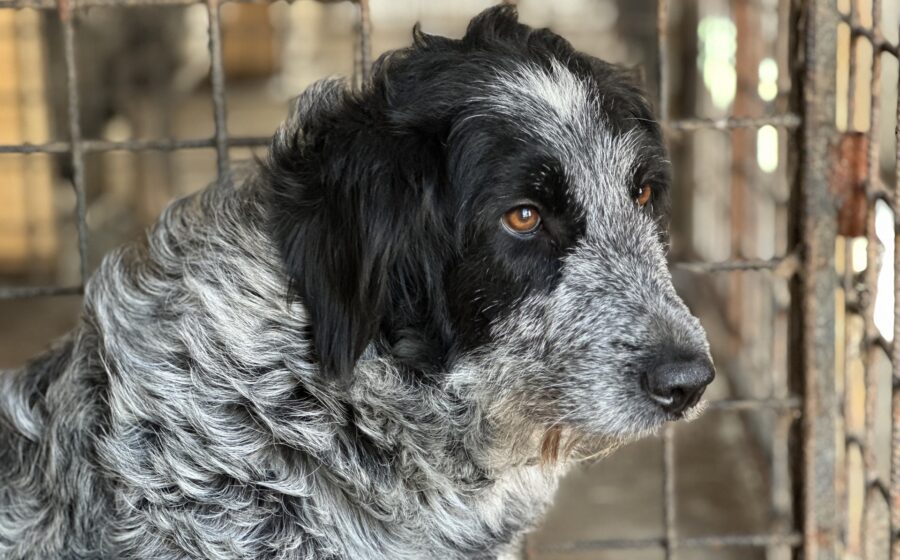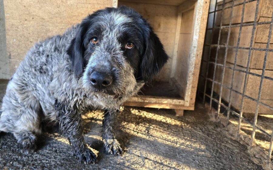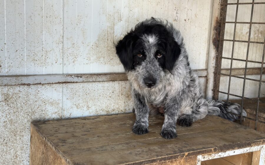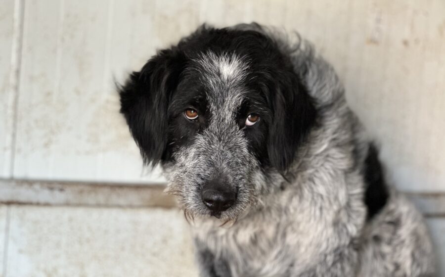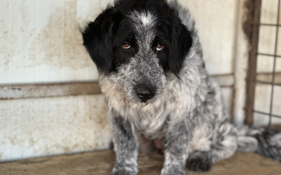 Unsere hübsche Maus mit dem schwarz-grau-weiß gelockten Fell, schaut noch skeptisch in die Kamera. Die Scheu vor Menschen ist aktuell noch groß – zu tief sitzen die Erfahrungen aus ihrer Vergangenheit. Sie wurde von Hundefängern eingefangen und in das öffentliche Shelter in Bistrița gebracht. Die meiste Zeit sitzt sie noch vorsichtig in einer Ecke der Hütte und beobachtet uns Menschen mit gesundem Respekt. Sie kommt nur sehr selten selbstständig aus ihrer Hütte heraus. Sie lässt sich aktuell noch nicht anfassen, zeigt aber auch keine Art von Aggression – knurrt oder bellt auch nicht. Sie schaut sogar teilweise eher neugierig. Als wir sie im April besucht haben, hatten wir das Gefühl, dass sie eher vom Shelterlärm und den Bedingungen vor Ort sehr eingeschüchter ist. Sie war durchaus offen für Leckerlies und zeigte sich neugierig, wenn wir in ihrem Kennel waren.