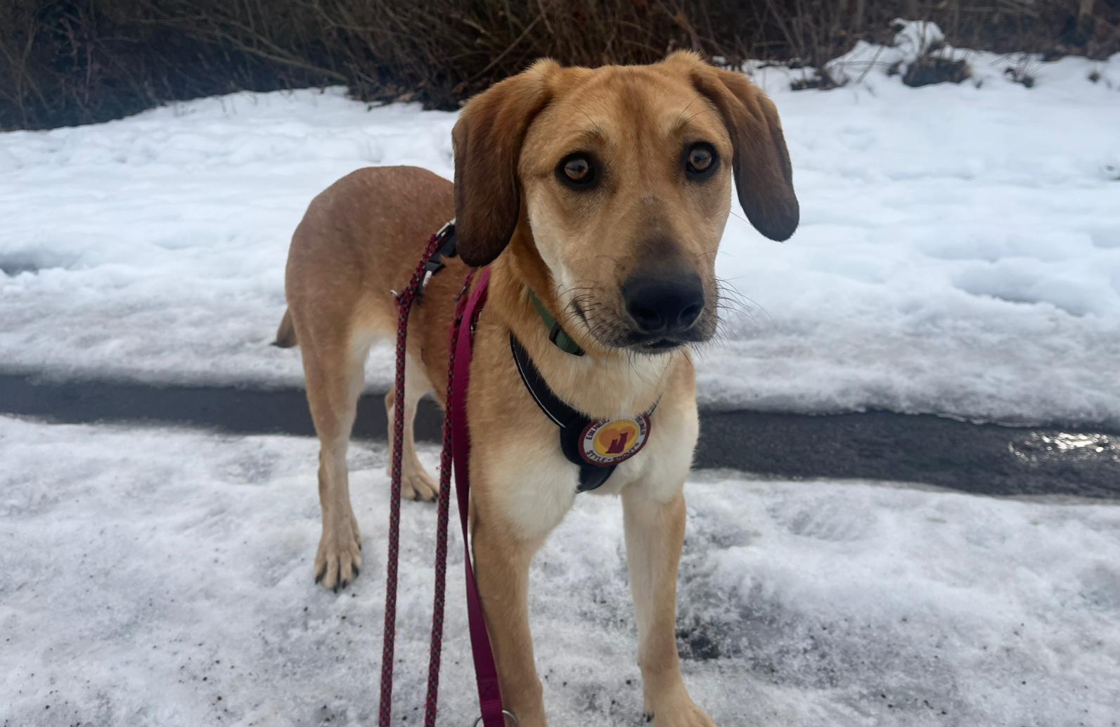 Unser hübsches Hundemädchen ist eine zarte Erscheinung, hat eine schlanke Statur, glänzendes hellbraunes Fell und ganz bezaubernde Schlappohren. Doch was wirklich berührt, sind ihre freundlichen, dunkelbraunen Augen, die Wärme und Freundlichkeit ausstrahlen. Hanni hat etwas Anziehendes an sich, das sofort Vertrauen schenkt.
