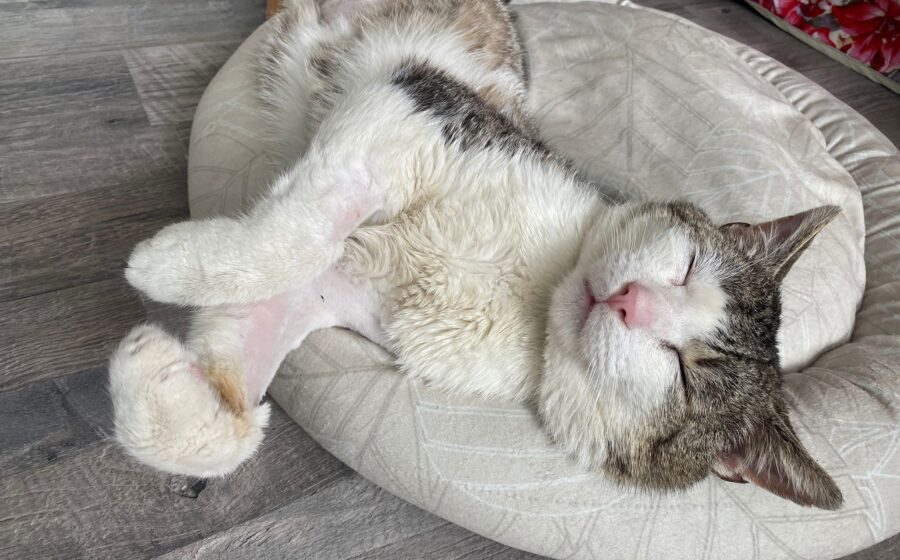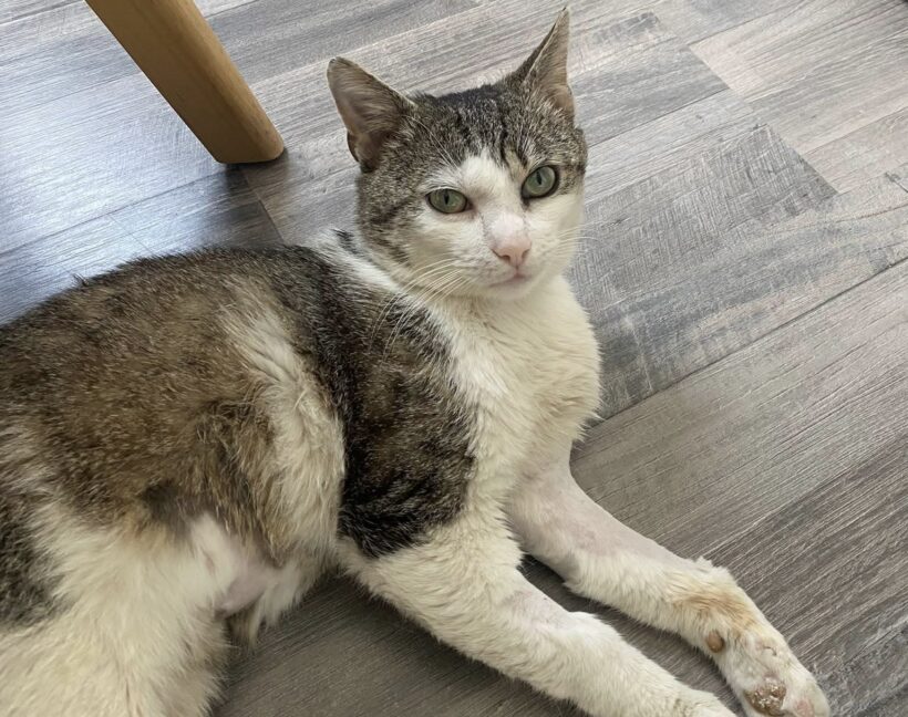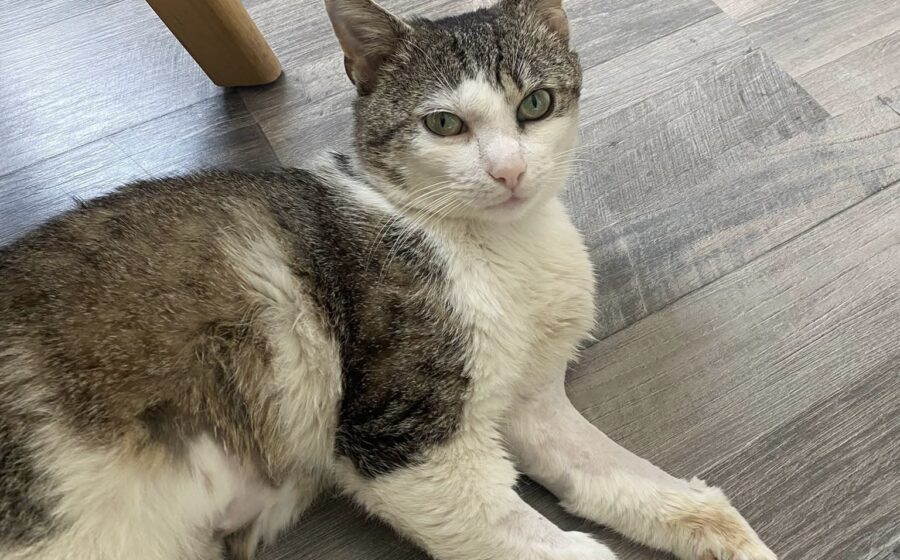 Hans-Peter ist ein etwa 4-jähriger Kater, der sich derzeit in einer Pflegestelle befindet. Seine Geschichte ist bewegend: Ein Helfer fand ihn erschöpft mitten auf der Straße, von allen ignoriert. Als man sich ihm näherte, versuchte er zu fliehen, konnte aber seine Vorderpfote nicht belasten. Röntgenaufnahmen zeigten einen feinen Knochenbruch, der glücklicherweise keine Operation erforderte. Nach einer entzündungshemmenden Behandlung geht es ihm bereits viel besser und er kann die Pfote wieder belasten. Für eine bessere Ultraschalluntersuchung wurde seine Pfote rasiert, um sicherzustellen, dass sich keine Flüssigkeit angesammelt hatte.